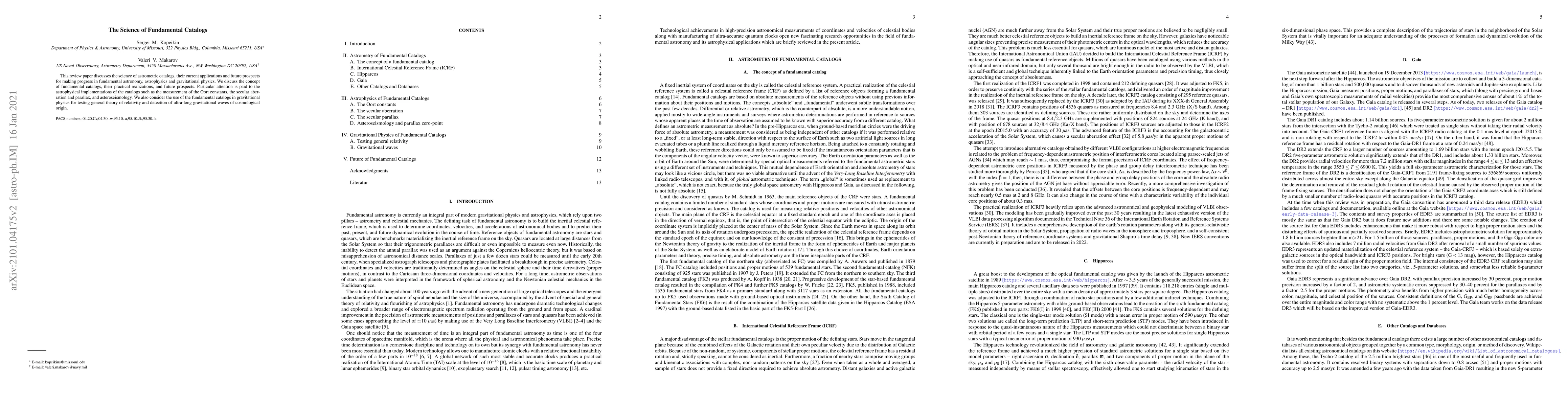 This review paper explores astrometric catalogs' role in fundamental astronomy and astrophysics, emphasizing their practical applications and future advancements. It highlights the measurement of Oort constants and gravitational tests, alongside prospects for asteroseismology and ultra-long gravitational wave detection.