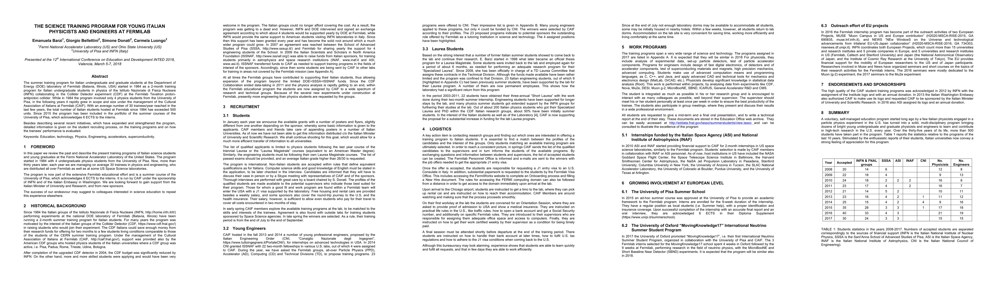 A summer training program for Italian physicists and engineers at Fermilab has grown from 4 students in 1984 to over 500 participants since then, providing valuable experience in cutting-edge research.