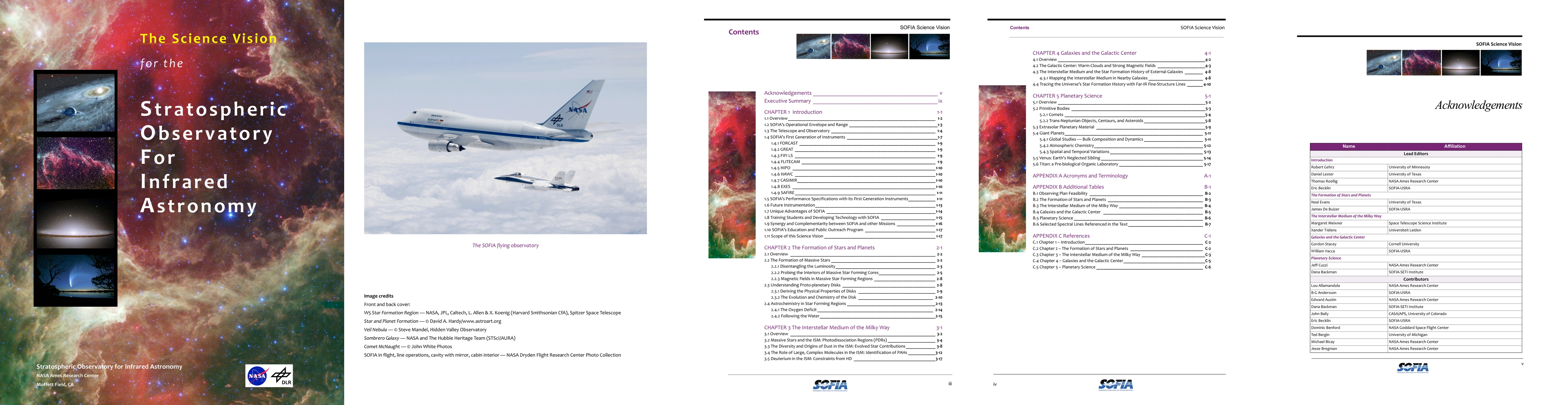 The SOFIA Science Vision outlines the observatory's capabilities and first-generation instruments, emphasizing four key science themes: star and planet formation, the Milky Way's interstellar medium, galaxies and the galactic center, and planetary science.