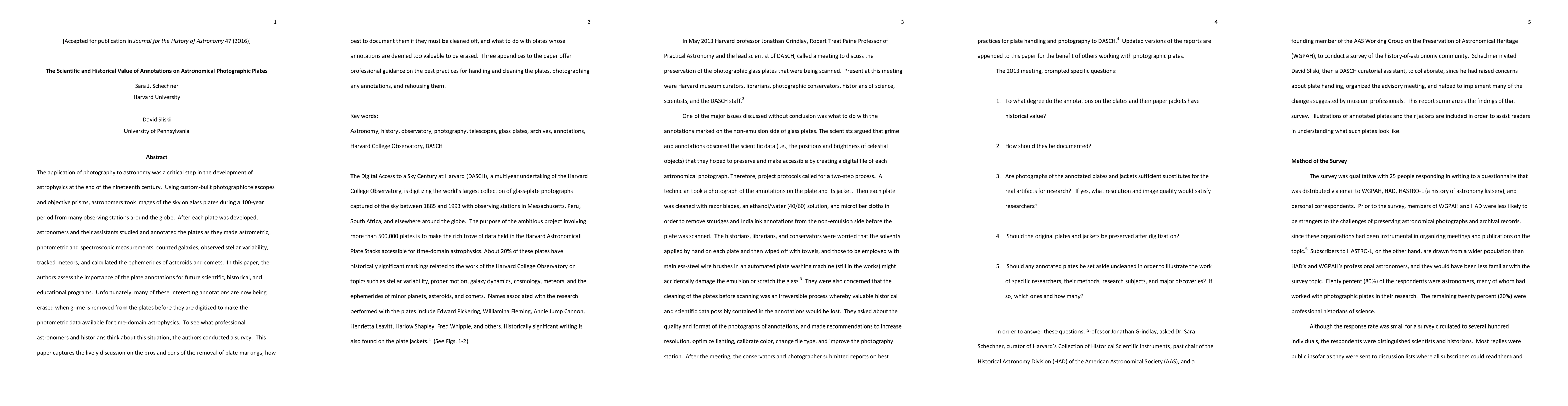 Researchers investigated the importance of annotations on astronomical photographic plates, which are being erased to digitize them, sparking debate among astronomers and historians about their value.