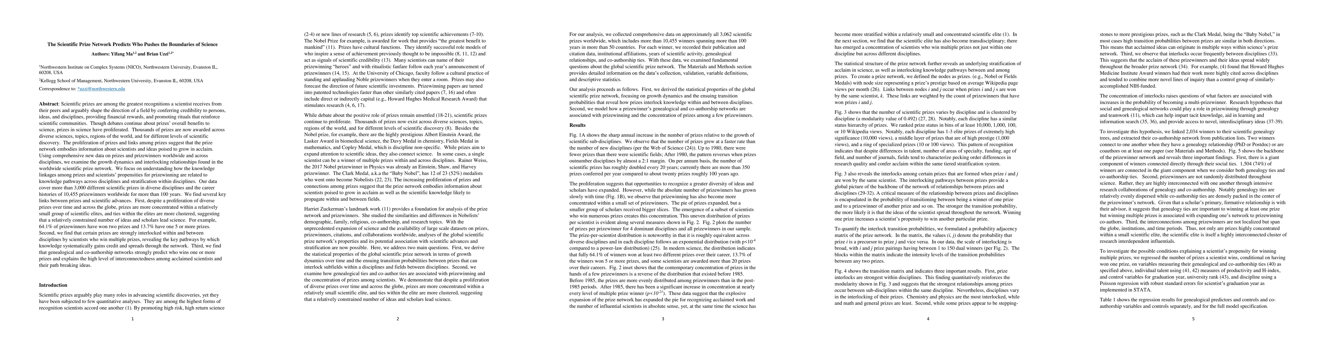 This paper investigates the worldwide scientific prize network to understand how prizes influence scientific advancement and the dynamics of scientific elites. It finds that while prizes proliferate, they remain concentrated among a small group of elites, and certain prizes create strong inter-disciplinary knowledge pathways, predicting prizewinning based on genealogical and co-authorship networks.