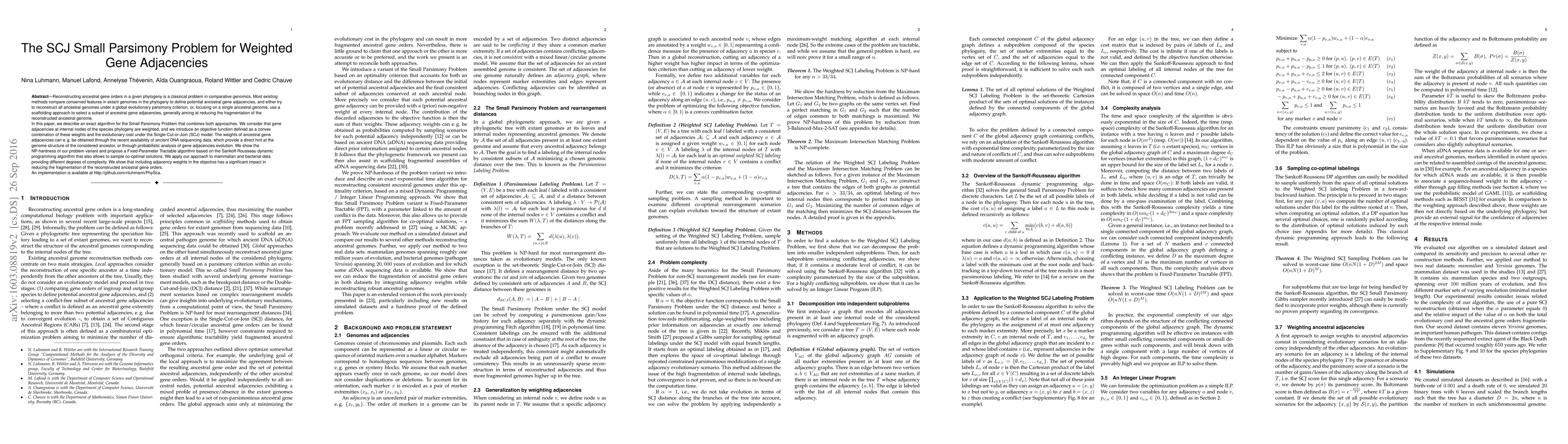 Reconstructing ancestral gene orders in a given phylogeny is a classical problem in comparative genomics. Most existing methods compare conserved features in extant genomes in the phylogeny to define potential ancestral gene adjacencies, and either try to reconstruct all ancestral genomes under a global evolutionary parsimony criterion, or, focusing on a single ancestral genome, use a scaffolding approach to select a subset of ancestral gene adjacencies, generally aiming at reducing the fragmentation of the reconstructed ancestral genome. In this paper, we describe an exact algorithm for the Small Parsimony Problem that combines both approaches. We consider that gene adjacencies at internal nodes of the species phylogeny are weighted, and we introduce an objective function defined as a convex combination of these weights and the evolutionary cost under the Single-Cut-or-Join (SCJ) model. The weights of ancestral gene adjacencies can e.g. be obtained through the recent availability of ancient DNA sequencing data, which provide a direct hint at the genome structure of the considered ancestor, or through probabilistic analysis of gene adjacencies evolution. We show the NP-hardness of our problem variant and propose a Fixed-Parameter Tractable algorithm based on the Sankoff-Rousseau dynamic programming algorithm that also allows to sample co-optimal solutions. We apply our approach to mammalian and bacterial data providing different degrees of complexity. We show that including adjacency weights in the objective has a significant impact in reducing the fragmentation of the reconstructed ancestral gene orders.