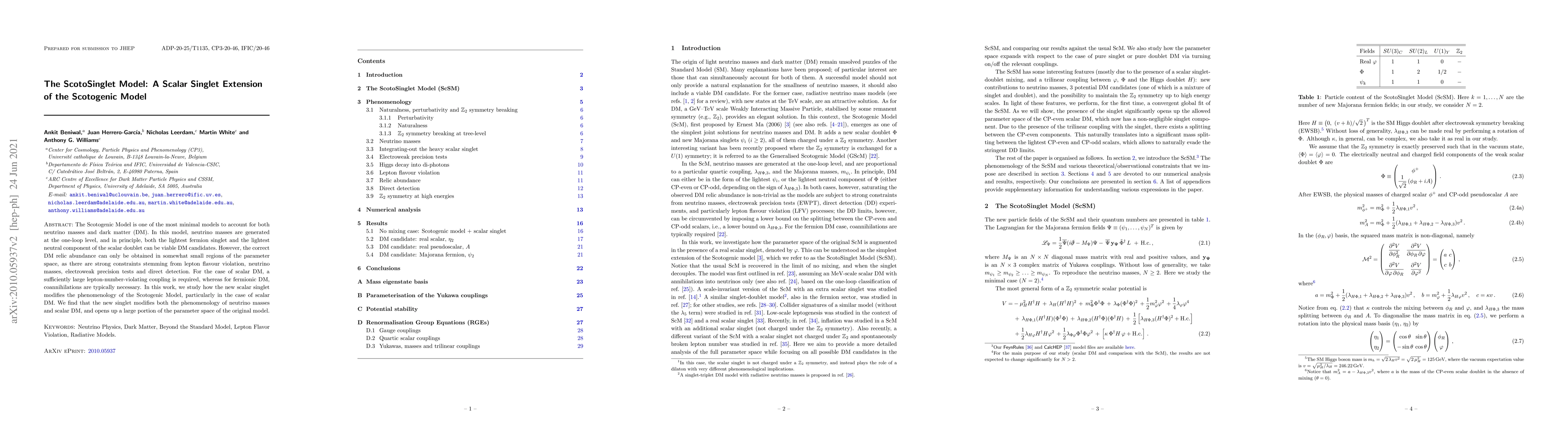 The ScotoSinglet Model extends the Scotogenic Model by introducing a scalar singlet, which modifies the phenomenology of both neutrino masses and scalar dark matter, significantly expanding the viable parameter space. This extension addresses the challenges in achieving the correct dark matter relic abundance in the original Scotogenic Model.