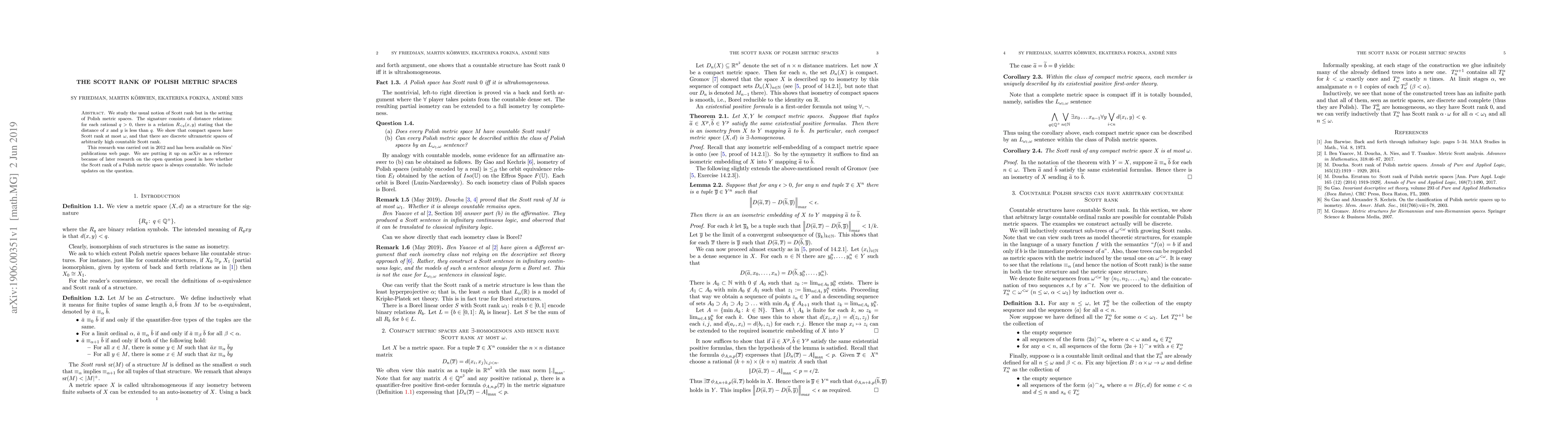 We study the usual notion of Scott rank but in the setting of Polish metric