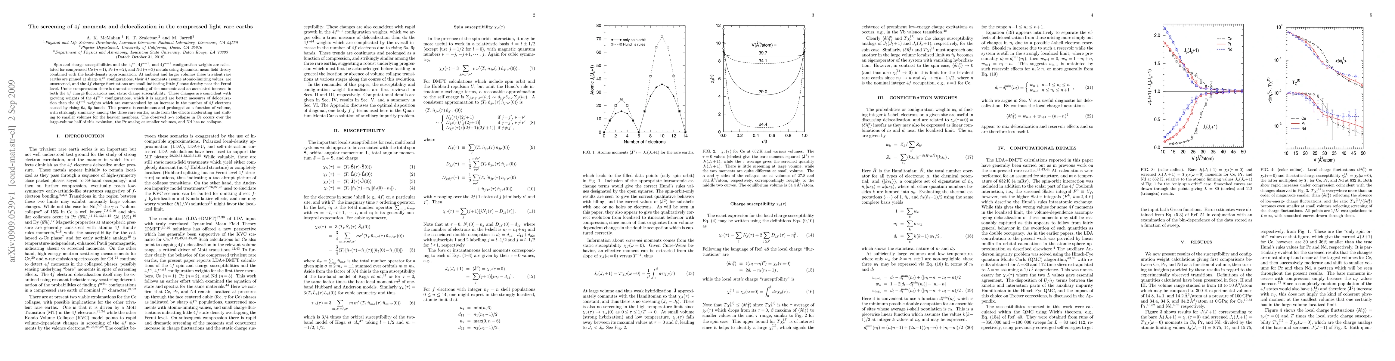 Spin and charge susceptibilities and the 4f^n, 4f^{n-1}, and 4f^{n+1} configuration weights are calculated for compressed Ce (n=1), Pr (n=2), and Nd (n=3) metals using dynamical mean field theory combined with the local-density approximation. At ambient and larger volumes these trivalent rare earths are pinned at sharp 4f^n configurations, their 4f moments assume atomic-limiting values, are unscreened, and the 4f charge fluctuations are small indicating little f state density near the Fermi level. Under compresssion there is dramatic screening of the moments and an associated increase in both the 4f charge fluctuations and static charge susceptibility. These changes are coincident with growing weights of the 4f^{n-1} configurations, which it is argued are better measures of delocalization than the 4f^{n+1} weights which are compromised by an increase in the number of 4f electrons caused by rising 6s, 6p bands. This process is continuous and prolonged as a function of volume, with strikingly similarity among the three rare earths, aside from the effects moderating and shifting to smaller volumes for the heavier members. The observed alpha-gamma collapse in Ce occurs over the large-volume half of this evolution, the Pr analog at smaller volumes, and Nd has no collapse.