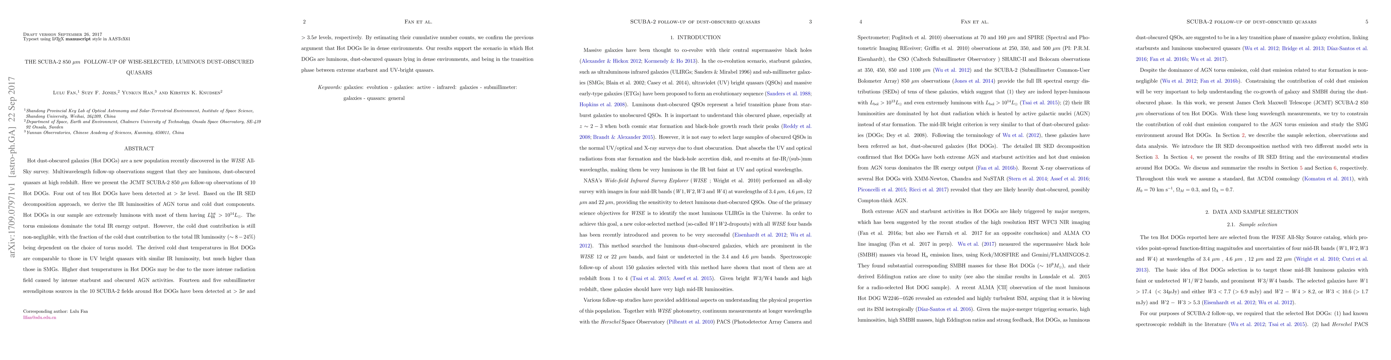 This study uses JCMT SCUBA-2 850 μm observations to analyze 10 Hot DOGs, finding four detected at >3σ. The IR luminosity of these luminous, dust-obscured quasars is dominated by AGN torus emissions, with cold dust contributing 8-24% of total IR luminosity. Hot DOGs reside in dense environments, suggesting they transition between extreme starbursts and UV-bright quasars.