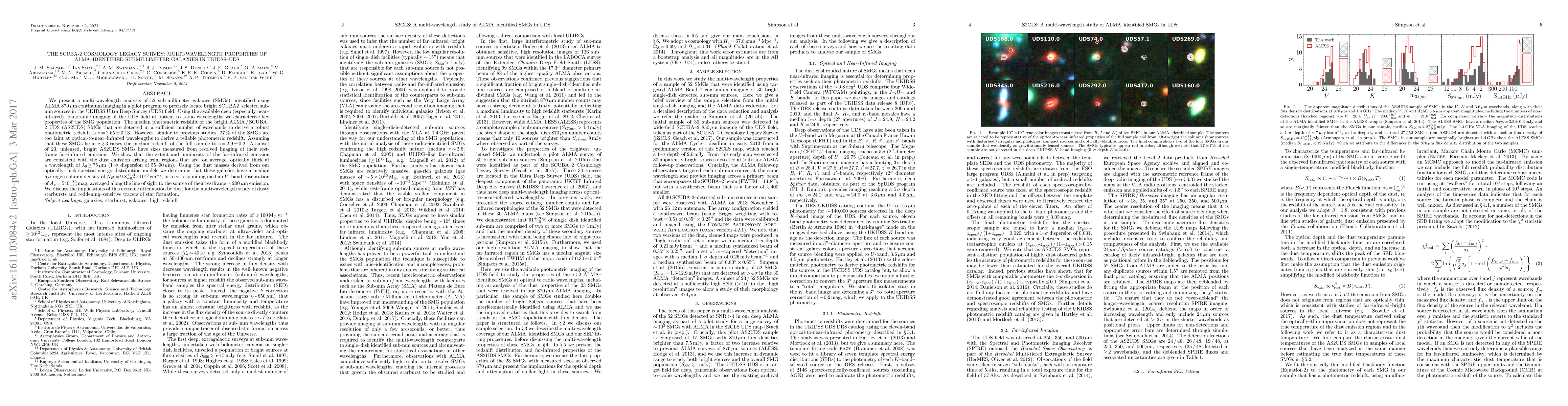 We present a multi-wavelength analysis of 52 sub-millimeter galaxies (SMGs), identified using ALMA 870$\mu$m continuum imaging in a pilot program to precisely locate bright SCUBA2-selected sub-mm sources in the UKIDSS Ultra Deep Survey (UDS) field. Using the available deep (especially near-infrared), panoramic imaging of the UDS field at optical-to-radio wavelengths we characterize key properties of the SMG population. The median photometric redshift of the bright ALMA/SCUBA-2 UDS (AS2UDS) SMGs that are detected in a sufficient number of wavebands to derive a robust photometric redshift is $z$=2.65$\pm$0.13. However, similar to previous studies, 27% of the SMGs are too faint at optical-to-near-infrared wavelengths to derive a reliable photometric redshift. Assuming that these SMGs lie at z$\gtrsim$3 raises the median redshift of the full sample to $z$=2.9$\pm$0.2. A subset of 23, unlensed, bright AS2UDS SMGs have sizes measured from resolved imaging of their rest-frame far-infrared emission. We show that the extent and luminosity of the far-infrared emission are consistent with the dust emission arising from regions that are optically thick, on average, at a wavelength of $\lambda_0$$\ge$75$\mu$m (1-$\sigma$ dispersion of 55-90$\mu$m). Using the dust masses derived from our optically-thick spectral energy distribution models we determine that these galaxies have a median hydrogen column density of $N_{H}$=9.8$_{-0.7}^{+1.4}$$\times$10$^{23}$cm$^{-2}$, or a corresponding median $V$-band obscuration of $A_\mathrm{v}$=540$^{+80}_{-40}$mag, averaged along the line of sight to the source of their restframe $\sim$200$\mu$m emission. We discuss the implications of this extreme attenuation by dust for the multiwavelength study of dusty starbursts and reddening-sensitive tracers of star formation.