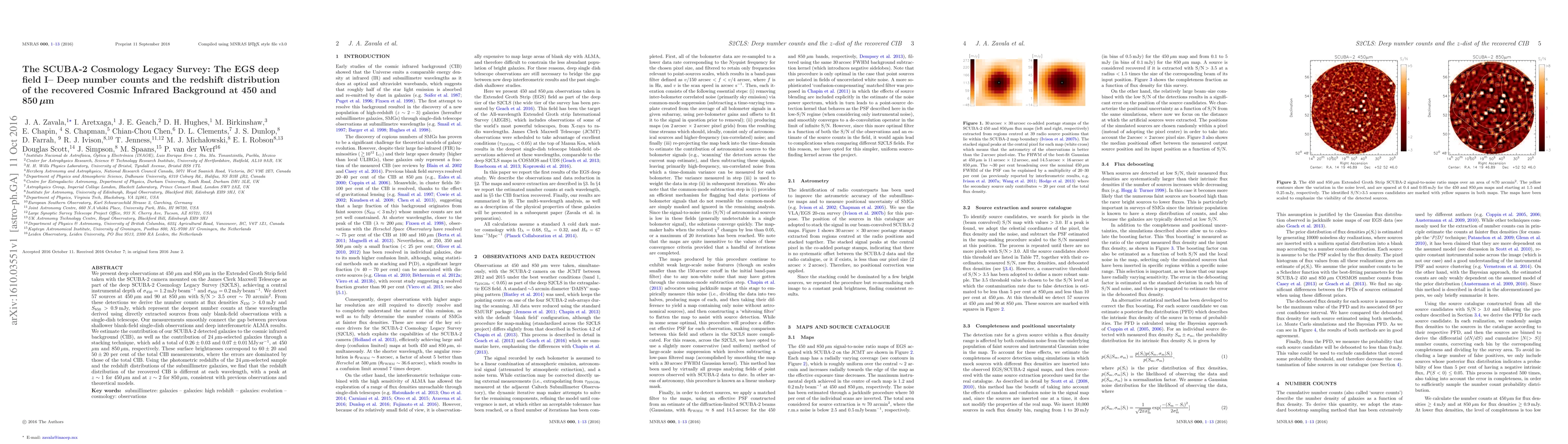 This paper reports deep observations at 450 and 850 um in the Extended Groth Strip using the SCUBA-2 camera, detecting 57 and 90 sources respectively, and deriving the deepest number counts at these wavelengths. The study estimates the contribution of detected galaxies to the cosmic infrared background, finding that the redshift distribution peaks at $z\sim1$ for 450 um and $z\sim2$ for 850 um.