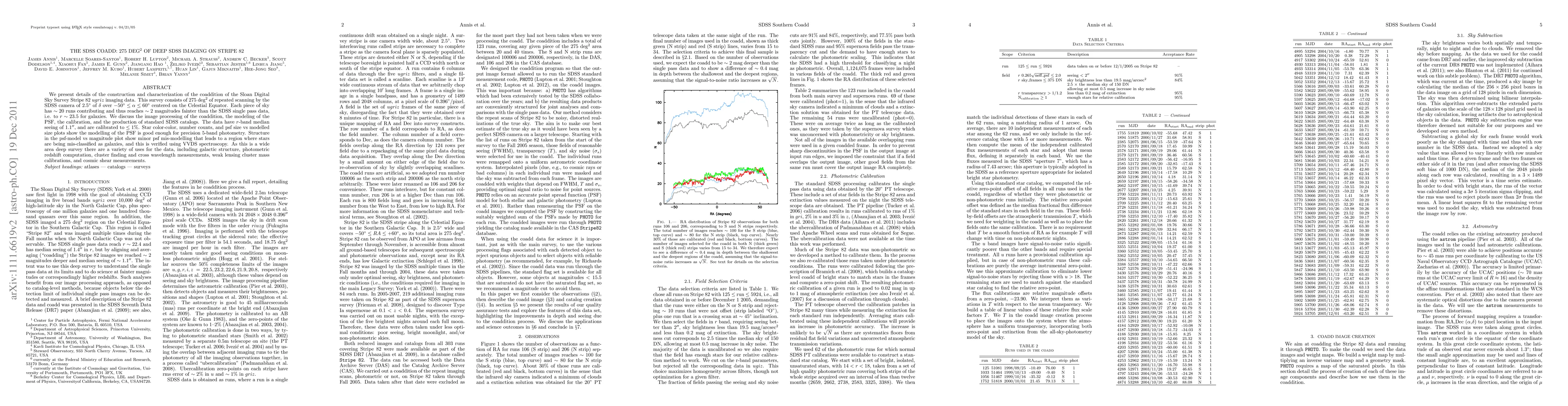 The SDSS Coadd project presents a 275 deg^2 deep imaging survey of Stripe 82, resulting in improved photometric precision and a wide range of applications for studying galaxy structure, cluster formation, and cosmic shear.