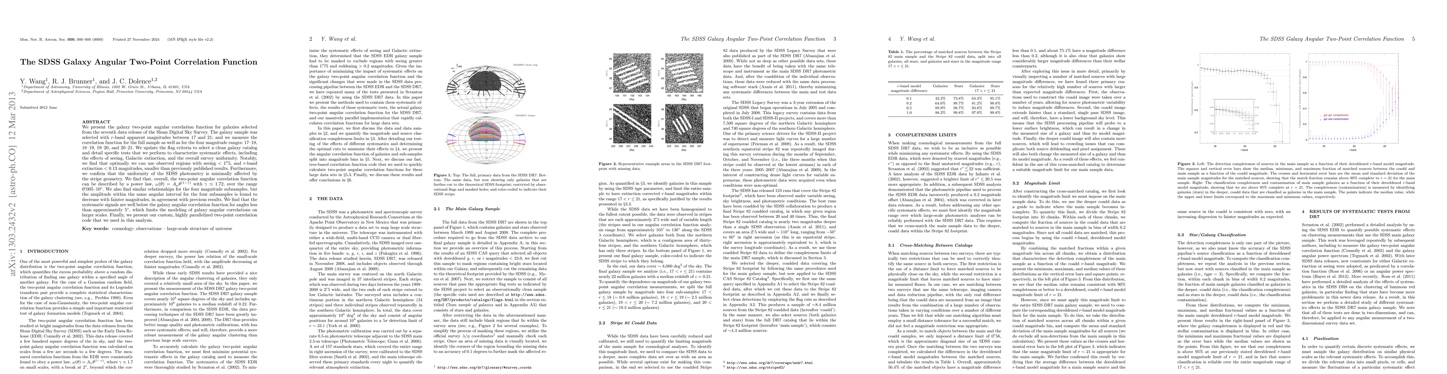 This paper analyzes the galaxy two-point angular correlation function from the SDSS survey, finding a power-law relationship with a slope of approximately 1.72. It details improved criteria for selecting a clean galaxy catalog and shows that systematic effects are minimal for regions with small seeing and low extinction.