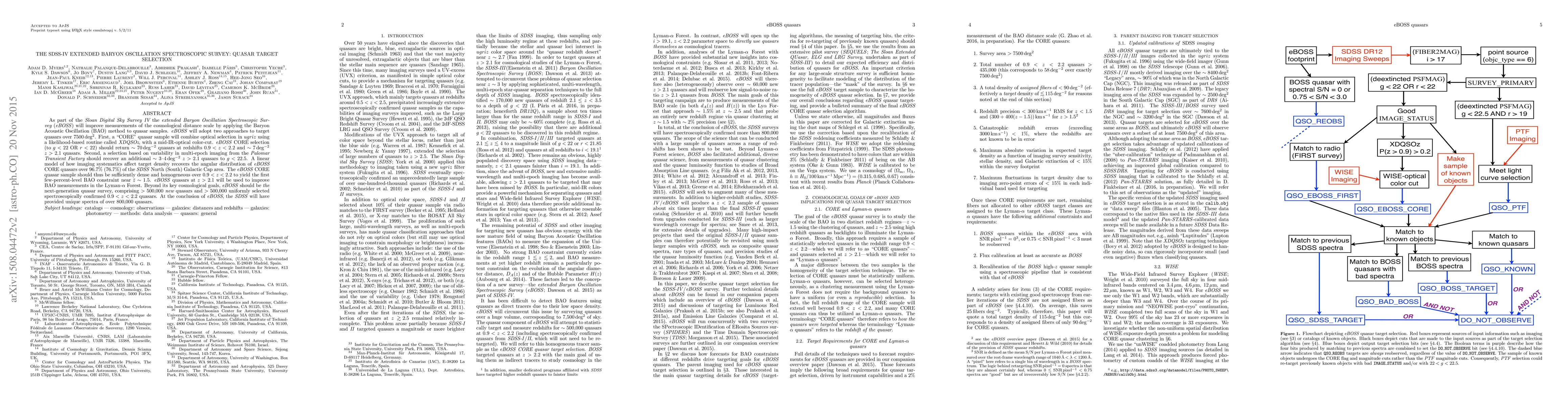 As part of the Sloan Digital Sky Survey IV the extended Baryon Oscillation Spectroscopic Survey (eBOSS) will improve measurements of the cosmological distance scale by applying the Baryon Acoustic Oscillation (BAO) method to quasar samples. eBOSS will adopt two approaches to target quasars over 7500 sq. deg. First, a "CORE" quasar sample will combine optical selection in ugriz using a likelihood-based routine called XDQSOz, with a mid-IR-optical color-cut. eBOSS CORE selection (to g < 22 OR r < 22) should return ~ 70 quasars per sq. deg. at redshifts 0.9 < z < 2.2 and ~7 z > 2.1 quasars per sq. deg. Second, a selection based on variability in multi-epoch imaging from the Palomar Transient Factory should recover an additional ~3-4 z > 2.1 quasars per sq. deg. to g < 22.5. A linear model of how imaging systematics affect target density recovers the angular distribution of eBOSS CORE quasars over 96.7% (76.7%) of the SDSS North (South) Galactic Cap area. The eBOSS CORE quasar sample should thus be sufficiently dense and homogeneous over 0.9 < z < 2.2 to yield the first few-percent-level BAO constraint near z~1.5. eBOSS quasars at z > 2.1 will be used to improve BAO measurements in the Lyman-alpha Forest. Beyond its key cosmological goals, eBOSS should be the next-generation quasar survey, comprising > 500,000 new quasars and > 500,000 uniformly selected spectroscopically confirmed 0.9 < z < 2.2 quasars. At the conclusion of eBOSS, the SDSS will have provided unique spectra of over 800,000 quasars.