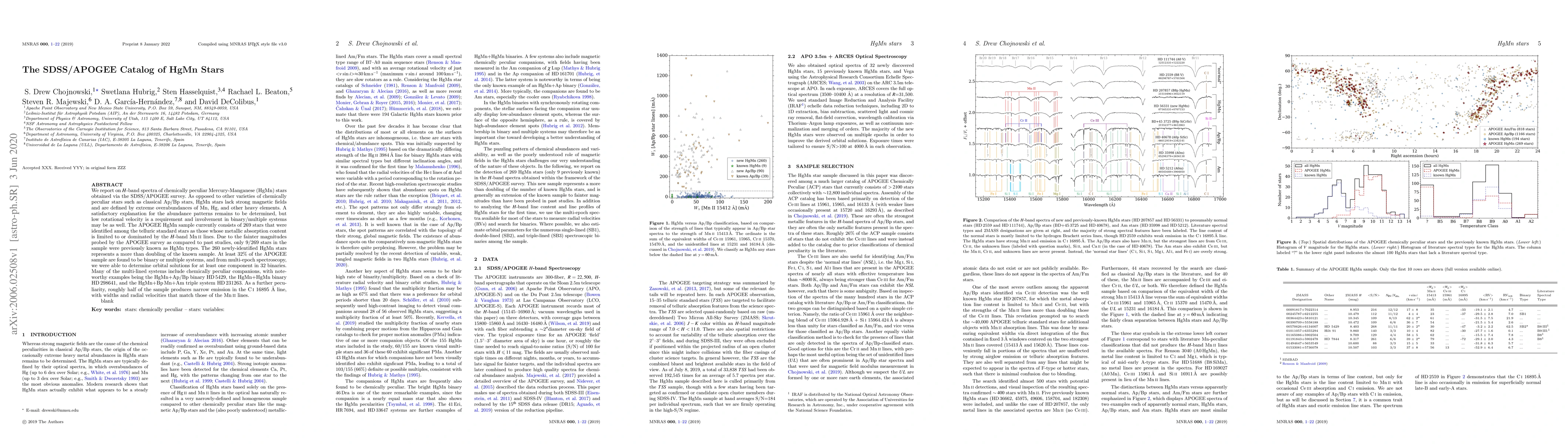 We report on $H$-band spectra of chemically peculiar Mercury-Manganese (HgMn) stars obtained via the SDSS/APOGEE survey. As opposed to other varieties of chemically peculiar stars such as classical Ap/Bp stars, HgMn stars lack strong magnetic fields and are defined by extreme overabundances of Mn, Hg, and other heavy elements. A satisfactory explanation for the abundance patterns remains to be determined, but low rotational velocity is a requirement and involvement in binary/multiple systems may be as well. The APOGEE HgMn sample currently consists of 269 stars that were identified among the telluric standard stars as those whose metallic absorption content is limited to or dominated by the $H$-band Mn II lines. Due to the fainter magnitudes probed by the APOGEE survey as compared to past studies, only 9/269 stars in the sample were previously known as HgMn types. The 260 newly-identified HgMn stars represents a more than doubling of the known sample. At least 32% of the APOGEE sample are found to be binary or multiple systems, and from multi-epoch spectroscopy, we were able to determine orbital solutions for at least one component in 32 binaries. Many of the multi-lined systems include chemically peculiar companions, with noteworthy examples being the HgMn+Ap/Bp binary HD 5429, the HgMn+HgMn binary HD 298641, and the HgMn+BpMn+Am triple system HD 231263. As a further peculiarity, roughly half of the sample produces narrow emission in the C I 16895 angstroms line, with widths and radial velocities that match those of the Mn II lines.