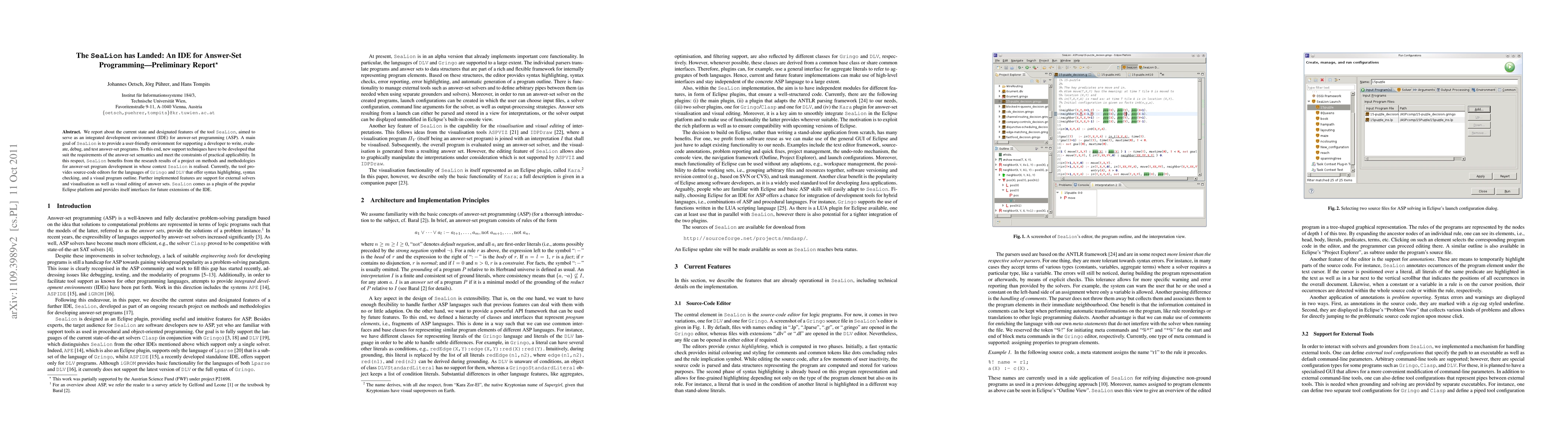 SeaLion is an IDE for answer-set programming, offering features like syntax highlighting and debugging tools, and it is realized as an Eclipse plugin with interfaces for future extensions. It supports the Gringo and DLV languages and includes visualization and visual editing of answer sets.