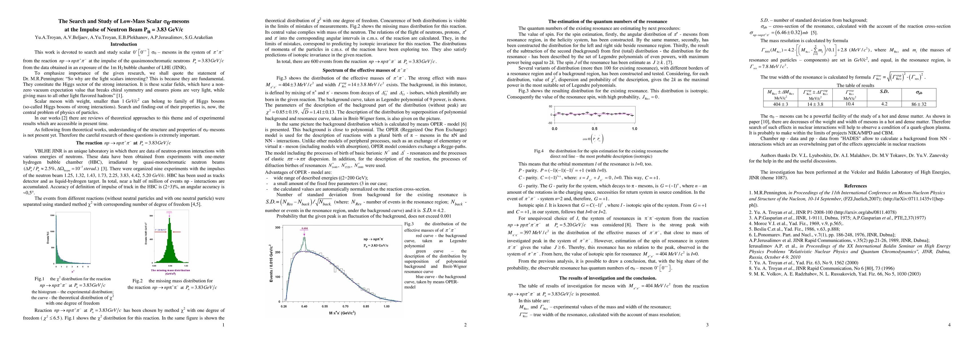 This study investigates the existence of low-mass scalar mesons, specifically $\sigma_0$, in the $np \rightarrow np\pi^+\pi^-$ reaction at Pn = 3.83 GeV/c using data from a 1m H2 bubble chamber. A resonance with spin 0 was identified in the $\pi^+\pi^-$ system with a statistical significance exceeding four times the background.
