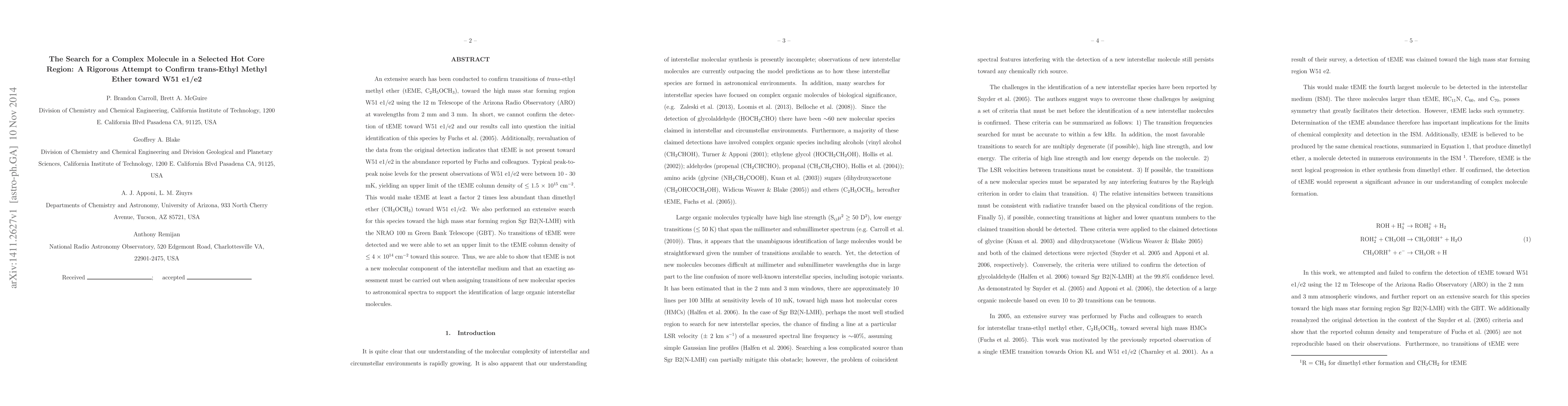 An extensive search has been conducted to confirm transitions of \textit{trans}-ethyl methyl ether (tEME, C$_2$H$_5$OCH$_3$), toward the high mass star forming region W51 e1/e2 using the 12 m Telescope of the Arizona Radio Observatory (ARO) at wavelengths from 2 mm and 3 mm. In short, we cannot confirm the detection of tEME toward W51 e1/e2 and our results call into question the initial identification of this species by \citet{FuchsSpace}. Additionally, reevaluation of the data from the original detection indicates that tEME is not present toward W51 e1/e2 in the abundance reported by Fuchs and colleagues. Typical peak-to-peak noise levels for the present observations of W51 e1/e2 were between 10 - 30 mK, yielding an upper limit of the tEME column density of $\leq$ 1.5 $\times$ 10$^{15}$ cm$^{-2}$. This would make tEME at least a factor 2 times less abundant than dimethyl ether (CH$_3$OCH$_3$) toward W51 e1/e2. We also performed an extensive search for this species toward the high mass star forming region Sgr B2(N-LMH) with the NRAO 100 m Green Bank Telescope (GBT). No transitions of tEME were detected and we were able to set an upper limit to the tEME column density of $\leq$ 4 $\times$ 10$^{14}$ cm$^{-2}$ toward this source. Thus, we are able to show that tEME is not a new molecular component of the interstellar medium and that an exacting assessment must be carried out when assigning transitions of new molecular species to astronomical spectra to support the identification of large organic interstellar molecules.