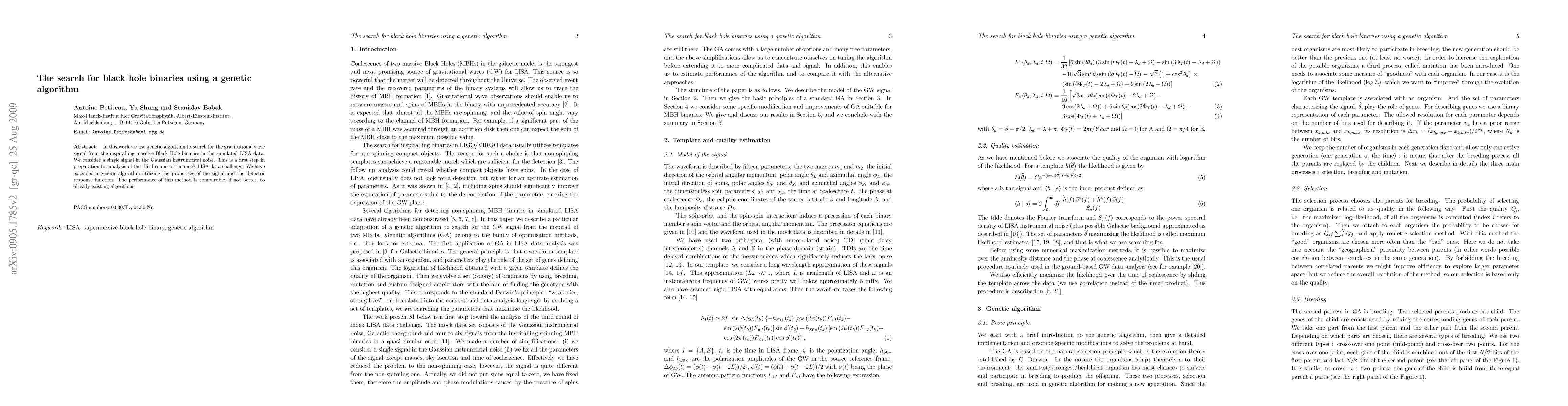 In this work we use genetic algorithm to search for the gravitational wave signal from the inspiralling massive Black Hole binaries in the simulated LISA data. We consider a single signal in the Gaussian instrumental noise. This is a first step in preparation for analysis of the third round of the mock LISA data challenge. We have extended a genetic algorithm utilizing the properties of the signal and the detector response function. The performance of this method is comparable, if not better, to already existing algorithms.
