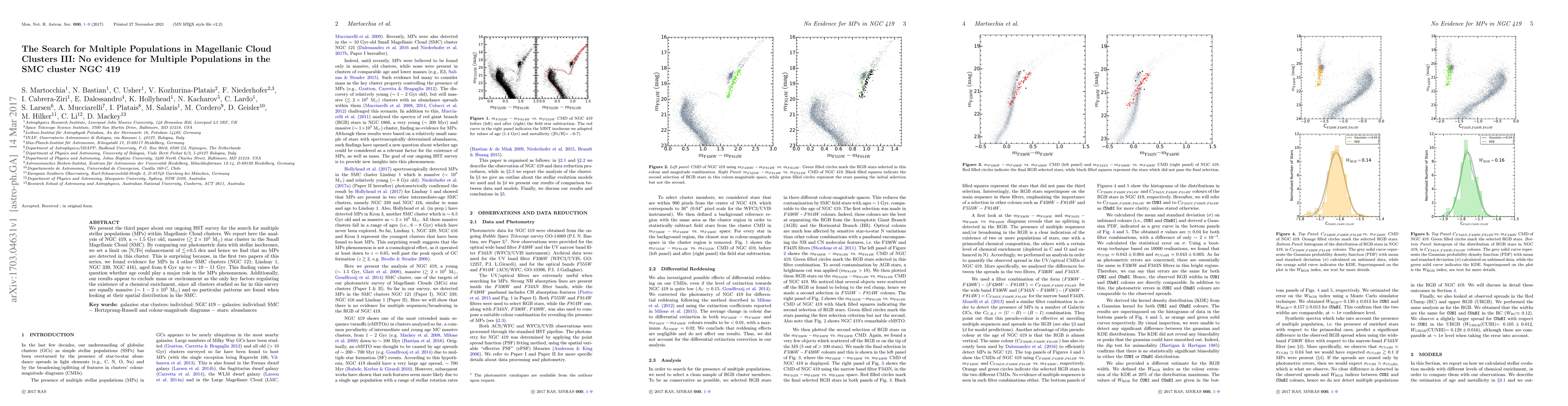 This study finds no evidence for multiple stellar populations in the SMC cluster NGC 419, despite detecting such populations in older SMC clusters in previous surveys. The analysis suggests that age may play a significant role in the phenomenon of multiple populations.