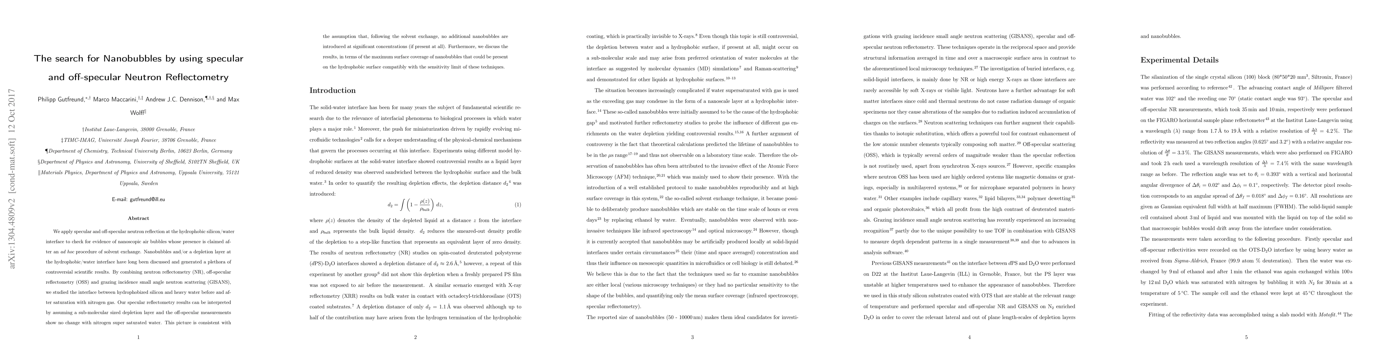 Researchers used neutron reflectometry to study the hydrophobic silicon/water interface for evidence of nanobubbles after a solvent exchange procedure, finding no significant changes with nitrogen saturated water.