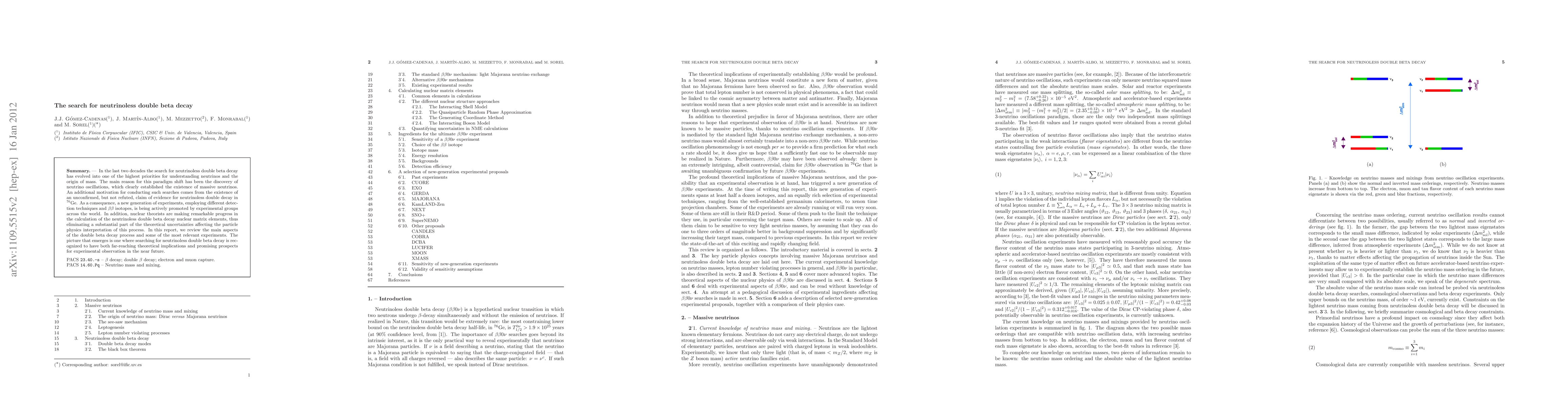 The search for neutrinoless double beta decay is now a top priority for neutrino research due to the established existence of massive neutrinos from neutrino oscillations. A renewed global effort is underway, with new experiments and theoretical advancements aiming to detect this decay, which could have profound implications for understanding the origin of mass.