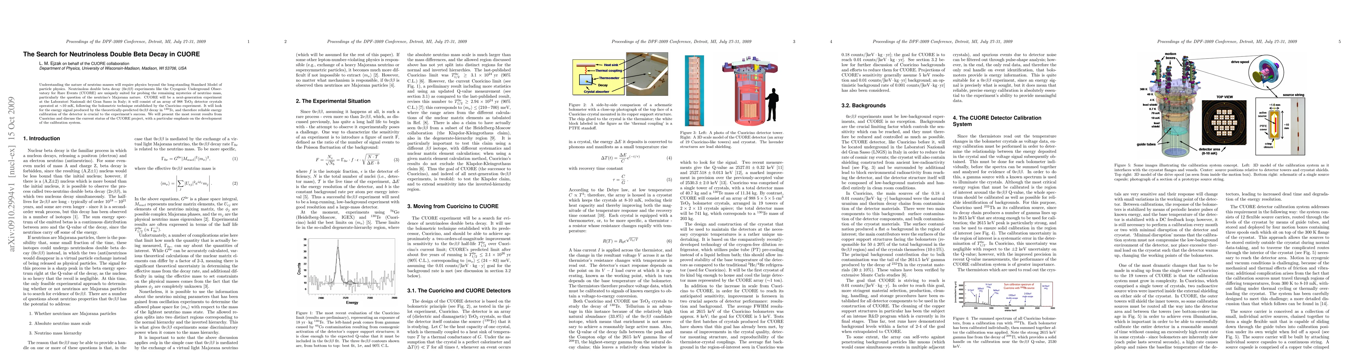 The CUORE experiment aims to detect neutrinoless double beta decay to explore neutrino masses and their Majorana nature. The project involves an array of 988 TeO2 detector crystals at ~10 mK, with a focus on developing a reliable energy calibration system to ensure experimental success.