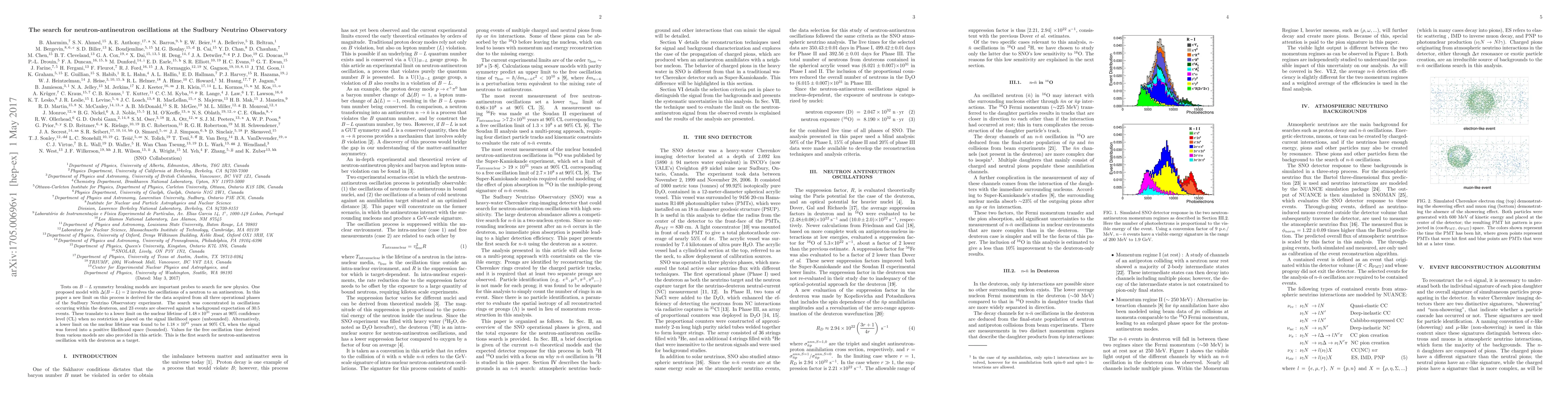 This paper reports a new limit on neutron-antineutron oscillation derived from data collected at the Sudbury Neutrino Observatory, finding 23 observed events against a background of 30.5. The study establishes a lower limit on the nuclear lifetime of $1.48\times 10^{31}$ years at 90% confidence level for the unbounded signal likelihood space.