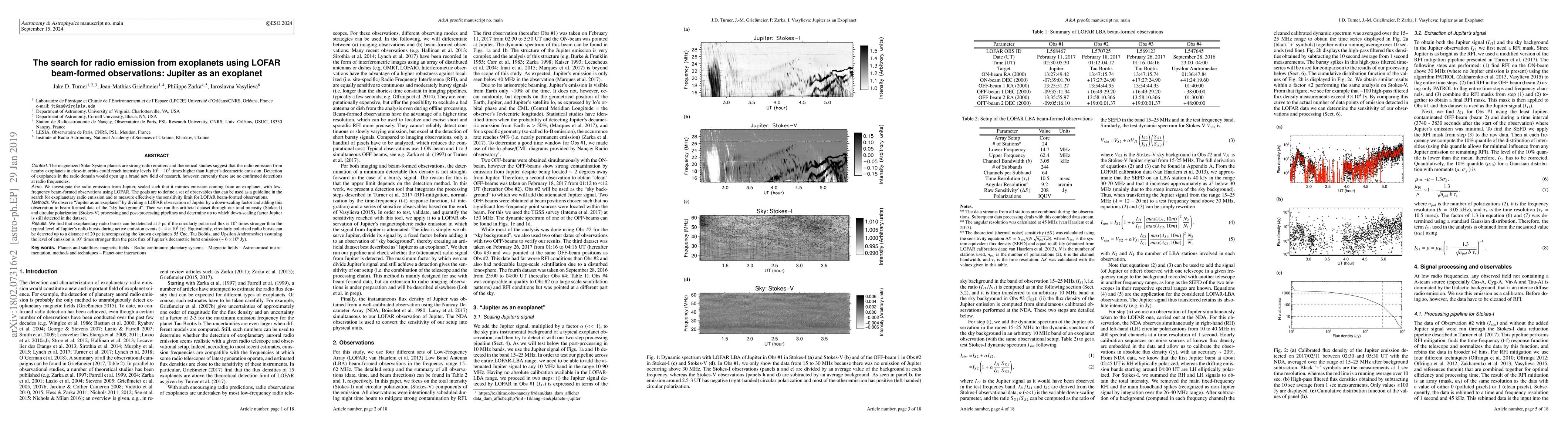 This paper investigates the potential for detecting radio emissions from exoplanets using LOFAR beam-formed observations, by simulating Jupiter's radio emissions scaled to mimic exoplanetary signals. The study finds that circularly polarized radio bursts from exoplanets could be detected up to 20 parsecs if they are significantly stronger than Jupiter's typical emissions.