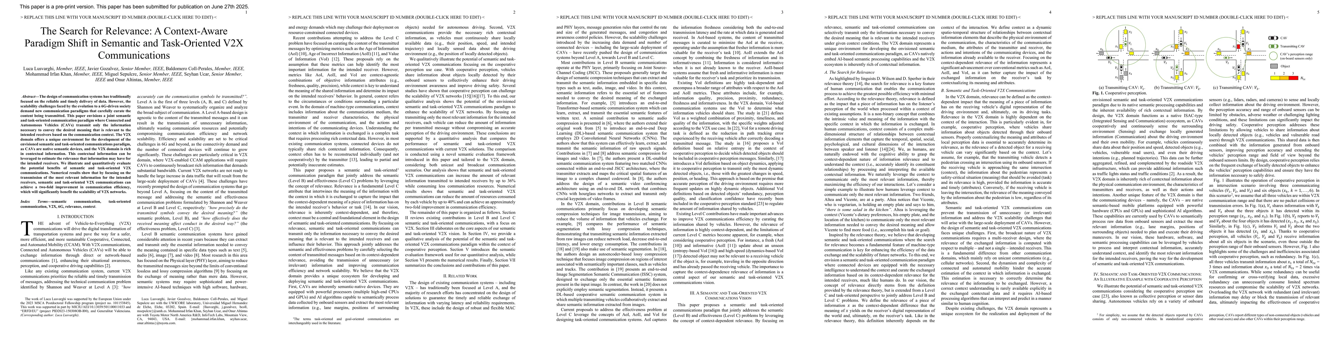 The novelty lies in the context-aware paradigm shift towards semantic and task-oriented V2X communications, leveraging CAVs' native semantic processing capabilities and the rich contextual information available in the V2X domain.