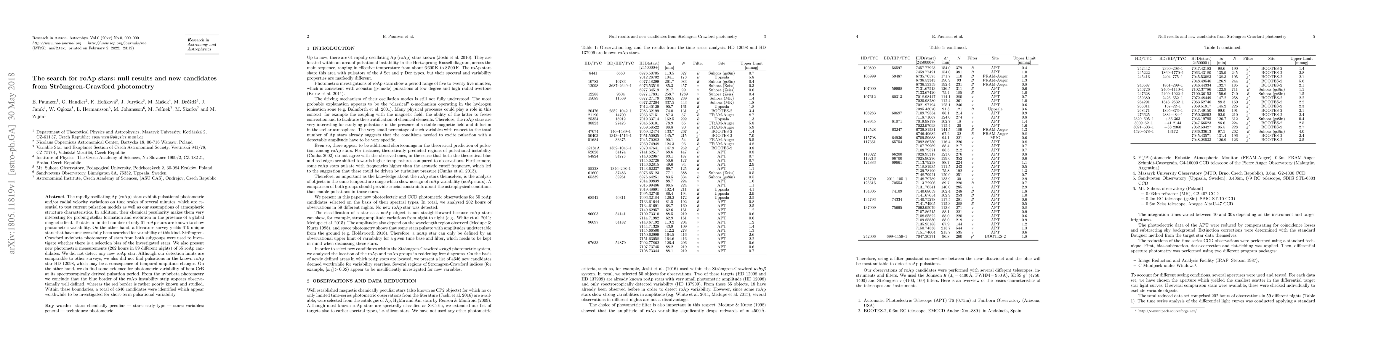 The paper investigates the search for rapidly oscillating Ap (roAp) stars using Stroemgren-Crawford photometry, finding no new roAp stars despite observing 55 candidates and detecting no pulsations in known star HD 12098, suggesting temporal amplitude changes. The study concludes that the blue border of the roAp instability strip is well defined, while the red border remains poorly known, identifying 4646 candidates for future investigation.