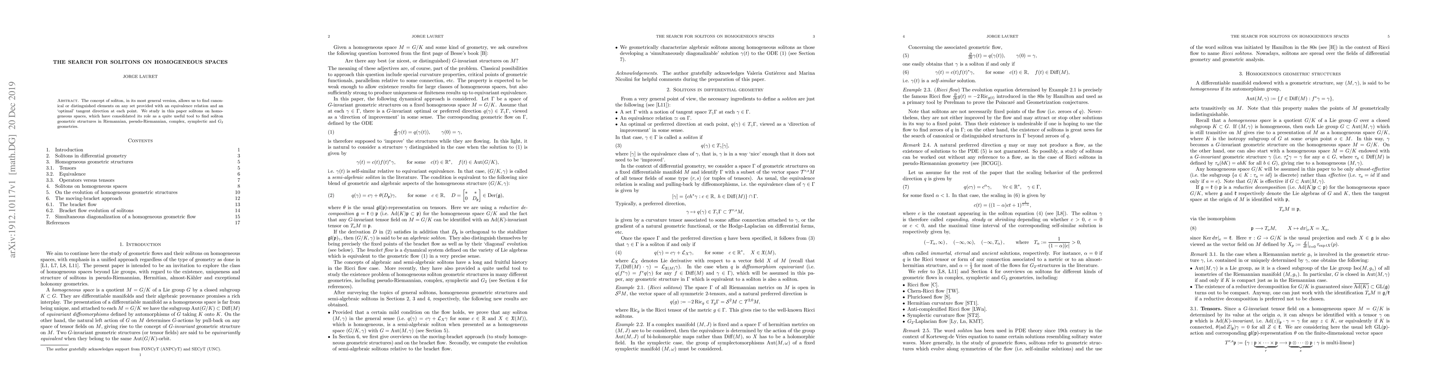 The paper presents a detailed analysis of solitons on homogeneous spaces, introducing a semi-algebraic soliton condition and examining its implications for various geometric structures.