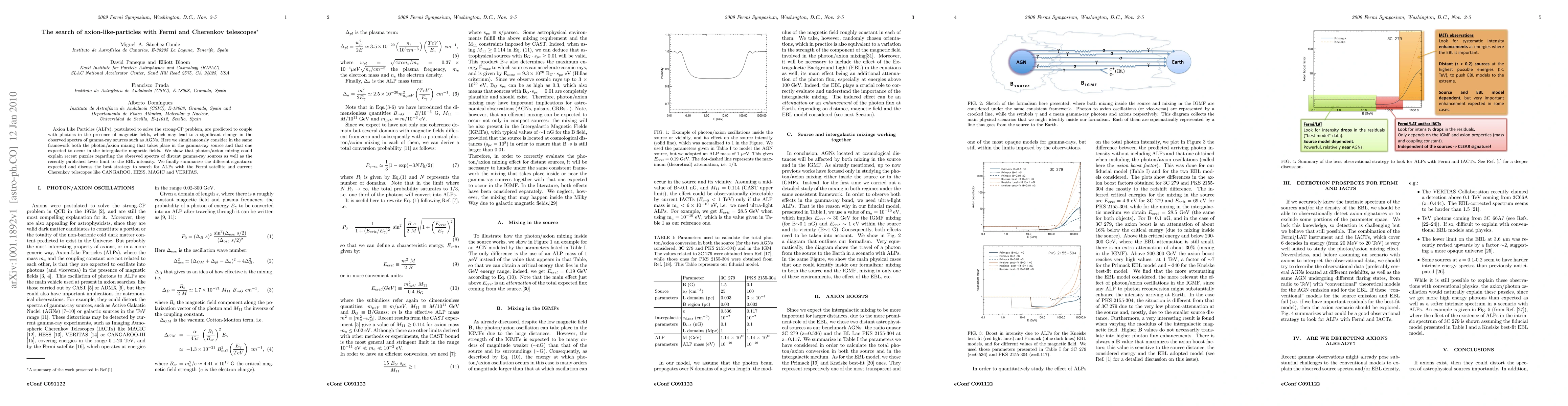 Axion Like Particles (ALPs), postulated to solve the strong-CP problem, are predicted to couple with photons in the presence of magnetic fields, which may lead to a significant change in the observed spectra of gamma-ray sources such as AGNs. Here we simultaneously consider in the same framework both the photon/axion mixing that takes place in the gamma-ray source and that one expected to occur in the intergalactic magnetic fields. We show that photon/axion mixing could explain recent puzzles regarding the observed spectra of distant gamma-ray sources as well as the recently published lower limit to the EBL intensity. We finally summarize the different signatures expected and discuss the best strategy to search for ALPs with the Fermi satellite and current Cherenkov telescopes like CANGAROO, HESS, MAGIC and VERITAS.