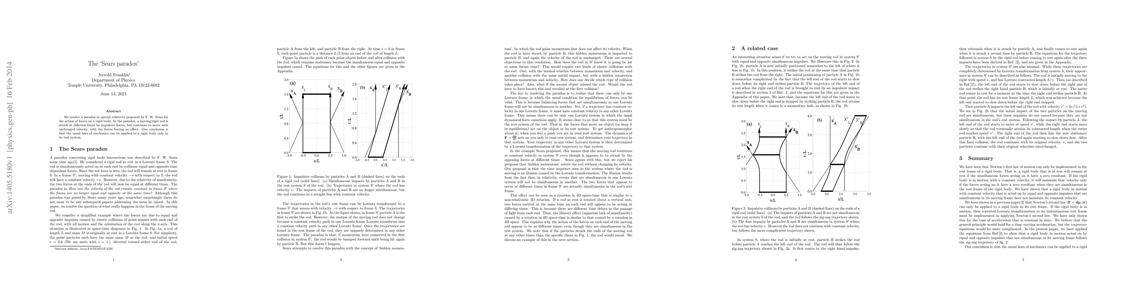 We resolve a paradox in special relativity proposed by F. W. Sears for the action of forces on a rigid body. In the paradox, a moving rigid rod is struck at different times by impulsive forces, but continues to move with unchanged velocity, with the forces having no effect. Our conclusion is that the usual laws of mechanics can be applied to a rigid body only in its rest system