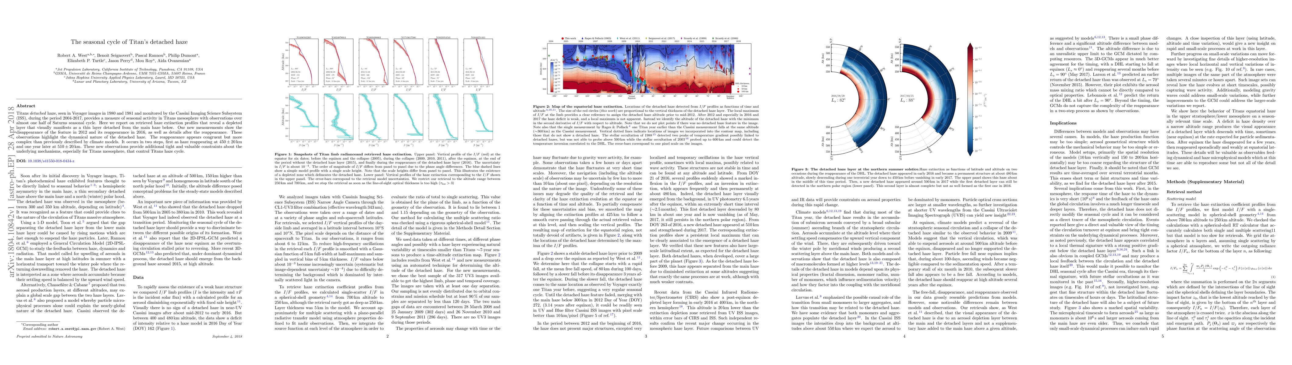 This study examines Titan's detached haze, observing its seasonal cycle over nearly half of Saturn's seasonal period, and finds a depleted haze layer that disappears in 2012 and reappears in 2016 in two distinct steps. These findings provide new insights into the dynamics and mechanisms governing Titan's mesosphere haze cycle.