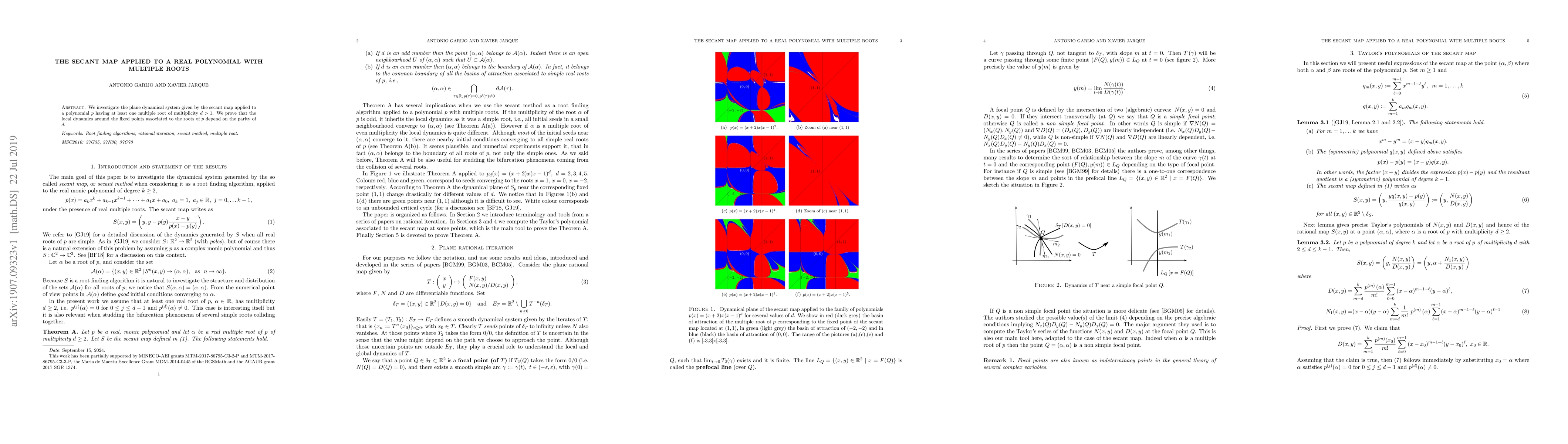 We investigate the plane dynamical system given by the secant map applied to a polynomial $p$ having at least one multiple root of multiplicity $d>1$. We prove that the local dynamics around the fixed points associated to the roots of $p$ depend on the parity of $d$.