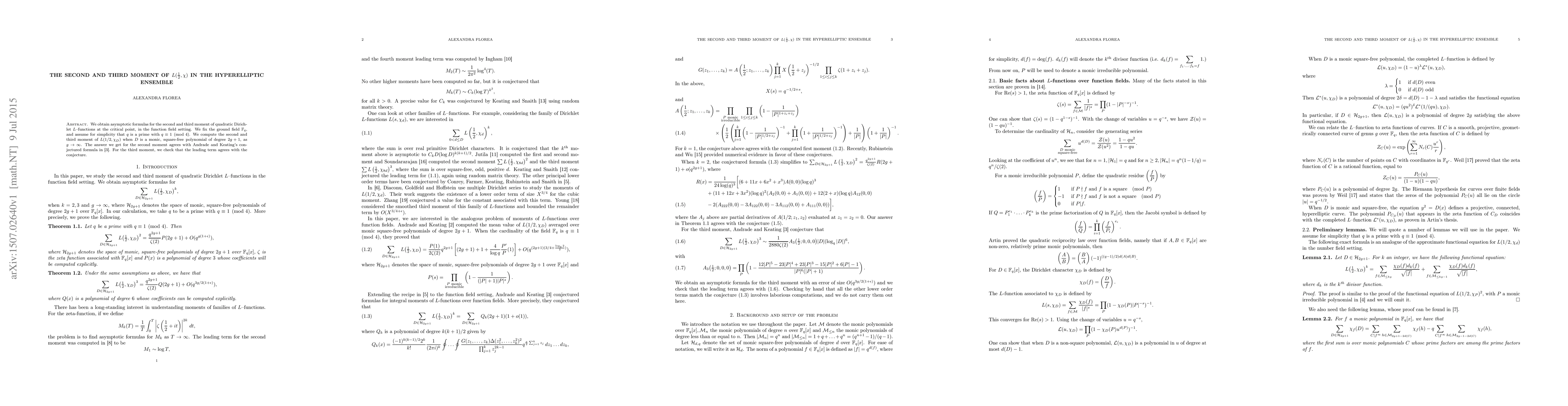 The paper calculates asymptotic formulas for the second and third moment of quadratic Dirichlet L-functions at the critical point in a hyperelliptic ensemble, matching Andrade and Keating's conjecture for the second moment.