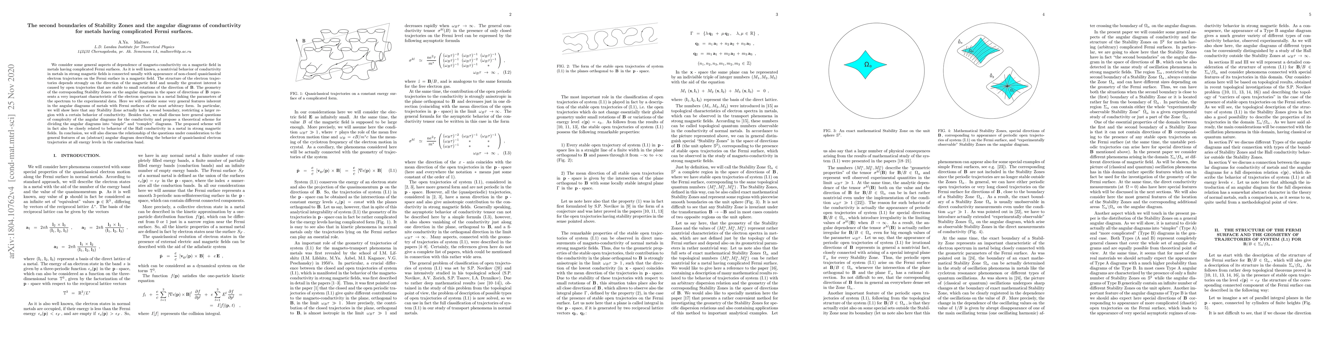 We consider some general aspects of dependence of magneto-conductivity on a magnetic field in metals having complicated Fermi surfaces. As it is well known, a nontrivial behavior of conductivity in metals in strong magnetic fields is connected usually with appearance of non-closed quasiclassical electron trajectories on the Fermi surface in a magnetic field. The structure of the electron trajectories depends strongly on the direction of the magnetic field and usually the greatest interest is caused by open trajectories that are stable to small rotations of the direction of $\, {\bf B} $. The geometry of the corresponding Stability Zones on the angular diagram in the space of directions of $\, {\bf B} \, $ represents a very important characteristic of the electron spectrum in a metal linking the parameters of the spectrum to the experimental data. Here we will consider some very general features inherent in the angular diagrams of metals with Fermi surfaces of the most arbitrary form. In particular, we will show here that any Stability Zone actually has a second boundary, restricting a larger region with a certain behavior of conductivity. Besides that, we shall discuss here general questions of complexity of the angular diagrams for the conductivity and propose a theoretical scheme for dividing the angular diagrams into "simple" and "complex" diagrams. The proposed scheme will in fact also be closely related to behavior of the Hall conductivity in a metal in strong magnetic fields. In conclusion, we will also discuss the relationship of the questions under consideration to the general features of an (abstract) angular diagram describing the behavior of quasiclassical electron trajectories at all energy levels in the conduction band.