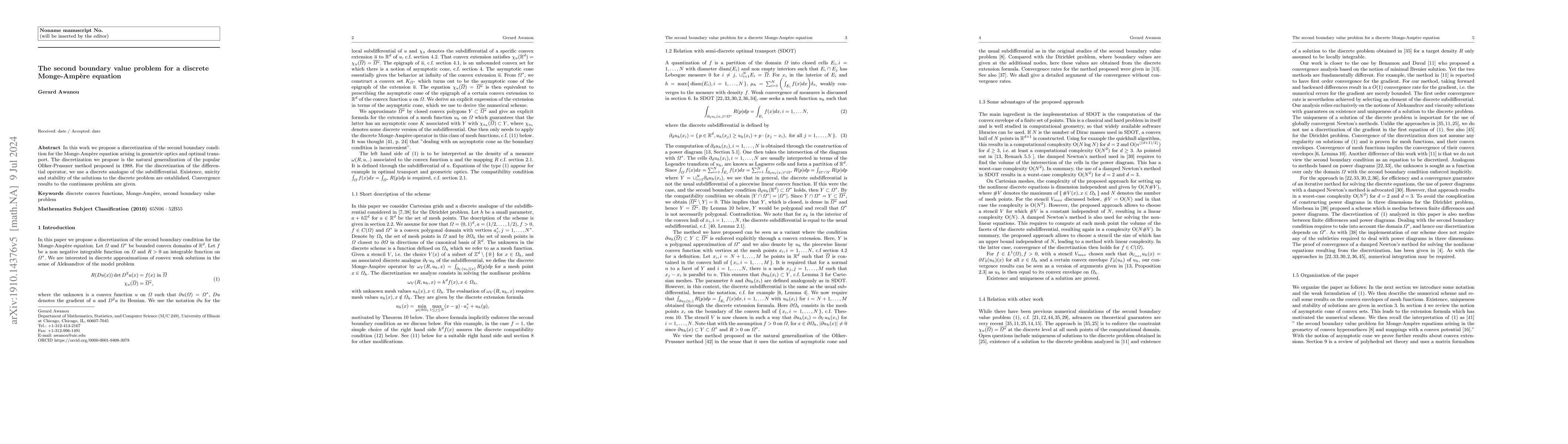 This paper proposes a discretization method for the second boundary value problem of the Monge-Ampere equation, generalizing the Oliker-Prussner method. It establishes existence, uniqueness, and stability of solutions to the discrete problem and provides convergence results to the continuous problem.