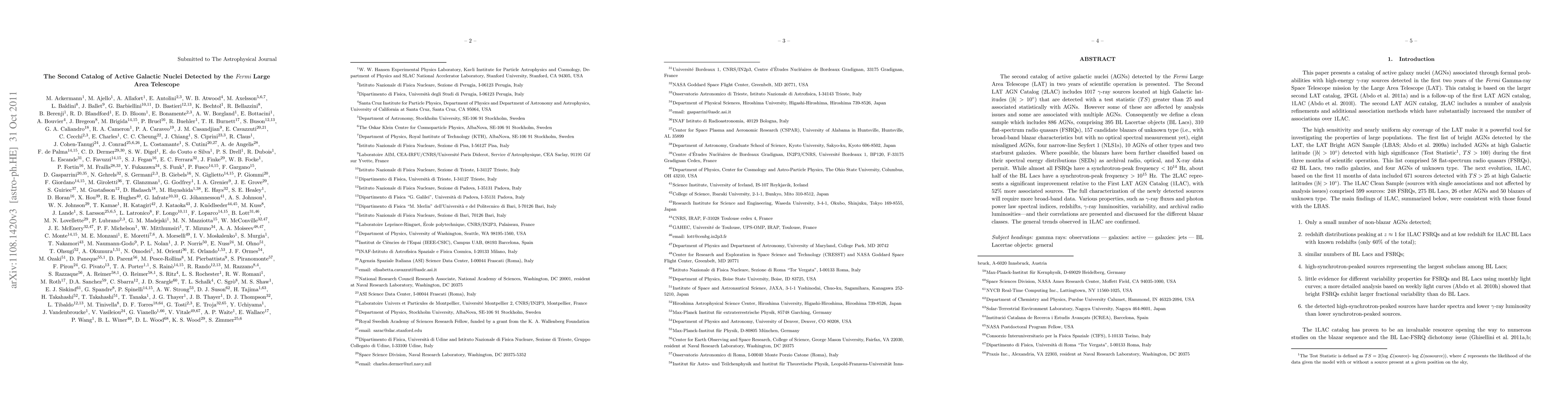 The Second Catalog of Active Galactic Nuclei (AGNs) detected by the Fermi Large Area Telescope (LAT) includes 1017 gamma-ray sources, with 886 forming a clean sample of AGNs classified into various types, showing significant improvements over the First LAT AGN Catalog. Detailed properties and correlations of these AGNs are discussed.