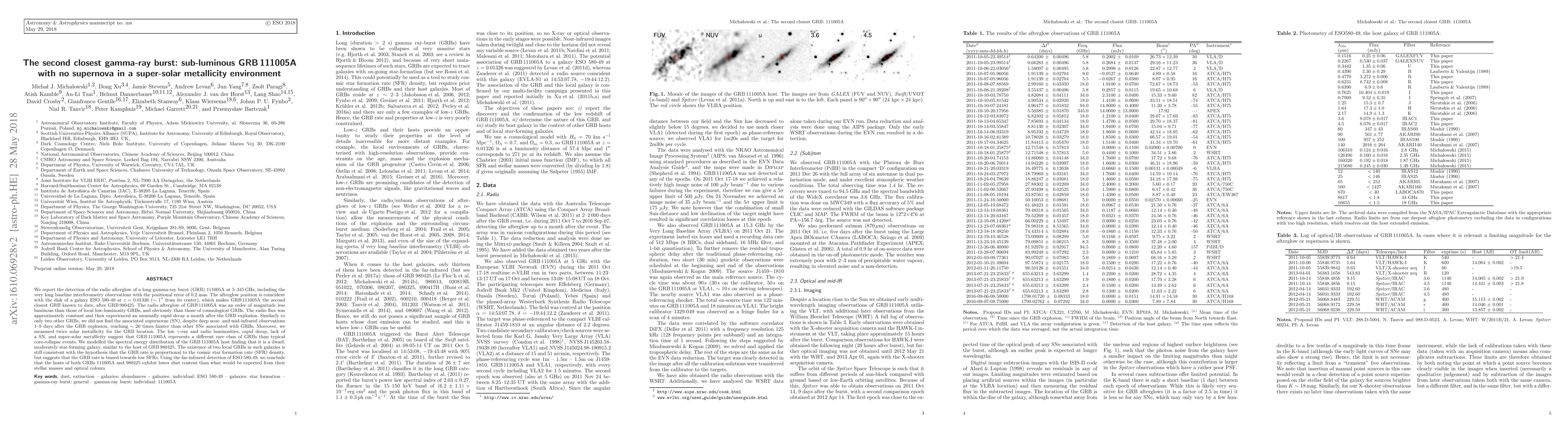This paper reports the detection of a sub-luminous long gamma-ray burst (GRB) 111005A, the second closest GRB known, located in a galaxy with super-solar metallicity. Unlike typical GRBs, it lacks an associated supernova and exhibits a rapid decay in radio afterglow.
