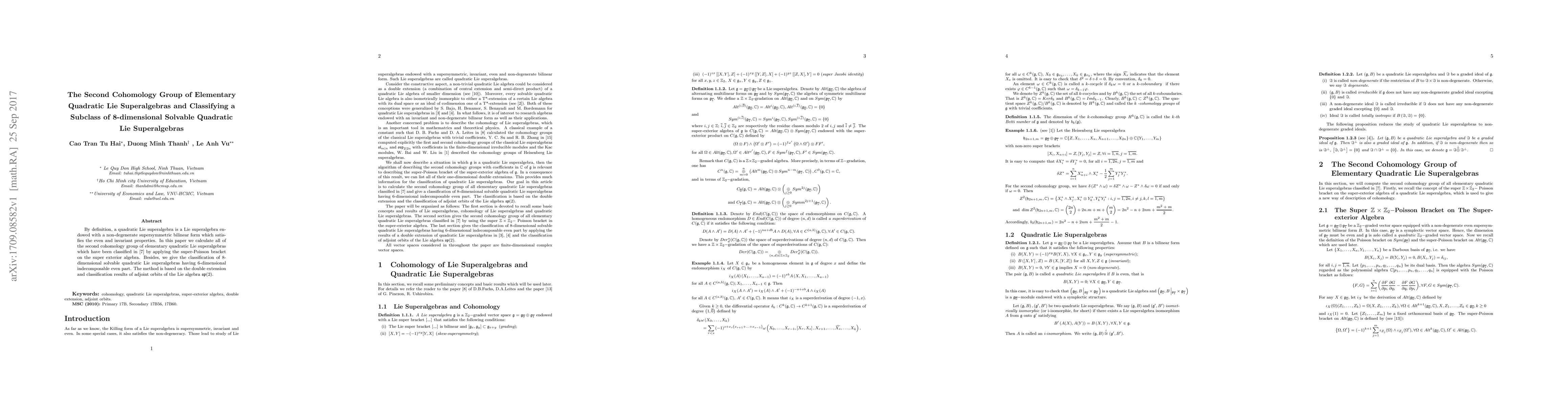This paper calculates the second cohomology group of elementary quadratic Lie superalgebras and classifies a subclass of 8-dimensional solvable quadratic Lie superalgebras with a 6-dimensional indecomposable even part, using the super-Poisson bracket and double extension methods.