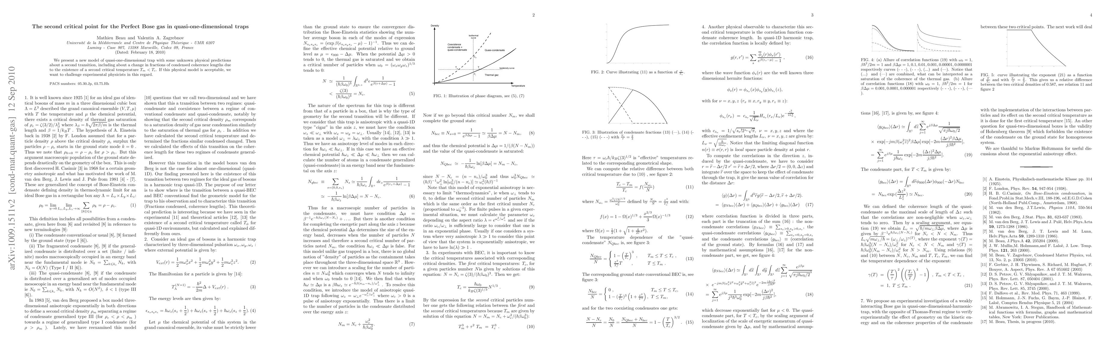 This paper introduces a new model for quasi-one-dimensional traps predicting a second critical point in a perfect Bose gas, characterized by a second critical temperature Tm < Tc, leading to changes in condensed coherence lengths. The authors challenge experimental physicists to verify these novel predictions.