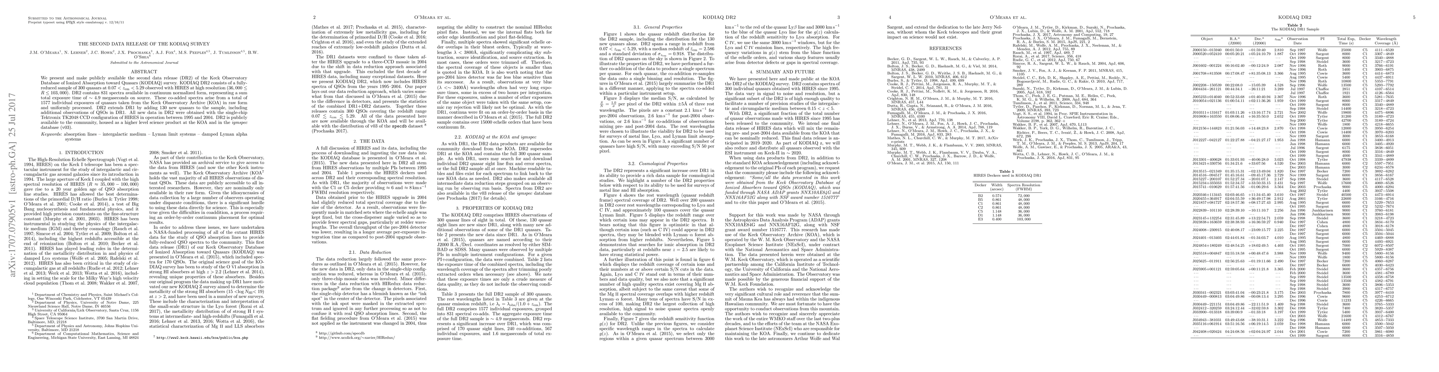 The KODIAQ Survey's second data release (DR2) includes 831 continuum-normalized spectra of 300 quasars observed at high resolution, extending the initial release by adding 130 new quasars and additional observations. The data is publicly available at the Keck Observatory Archive and the igmspec database.