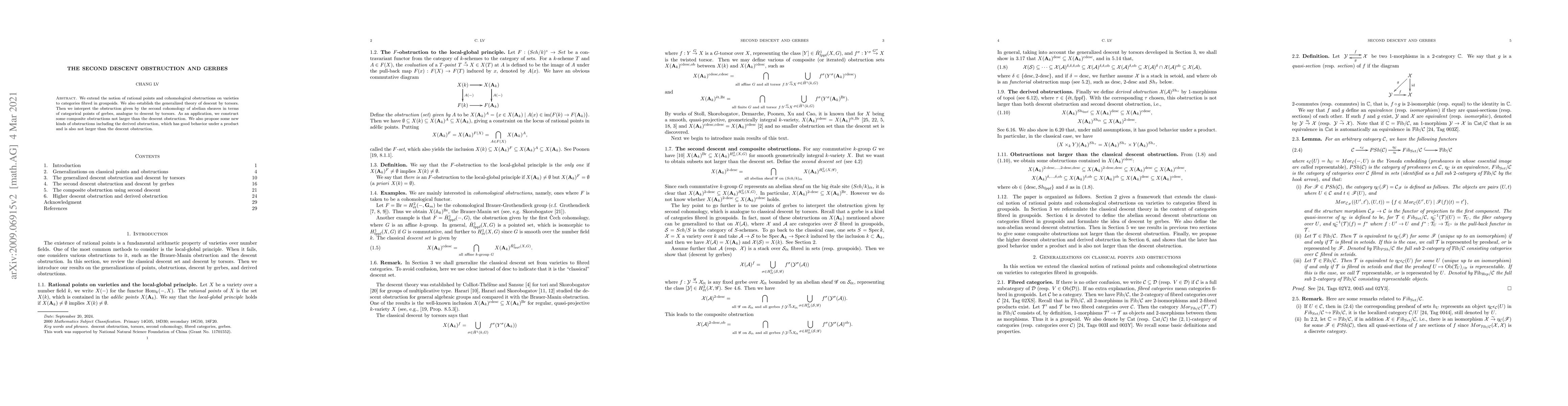 This paper extends rational points and cohomological obstructions to fibred categories and introduces a generalized theory of descent via torsors. It interprets the second cohomology obstruction using categorical points of gerbes and constructs composite and derived obstructions, all of which are not larger than the descent obstruction.