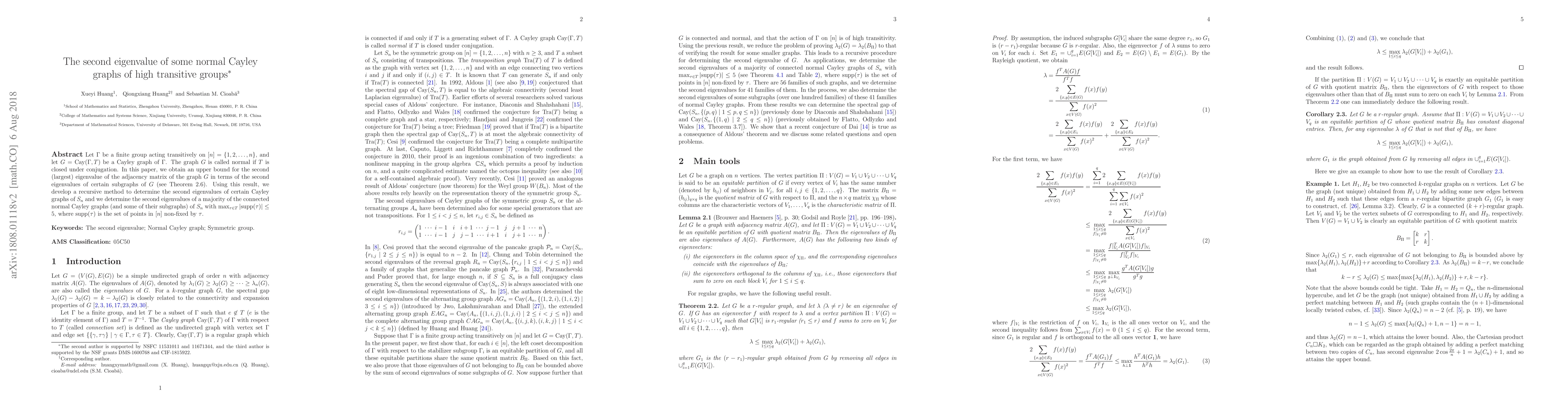 This research paper explores the second eigenvalue of normal Cayley graphs of high transitive groups, providing an upper bound for this value in terms of subgraphs of the graph.