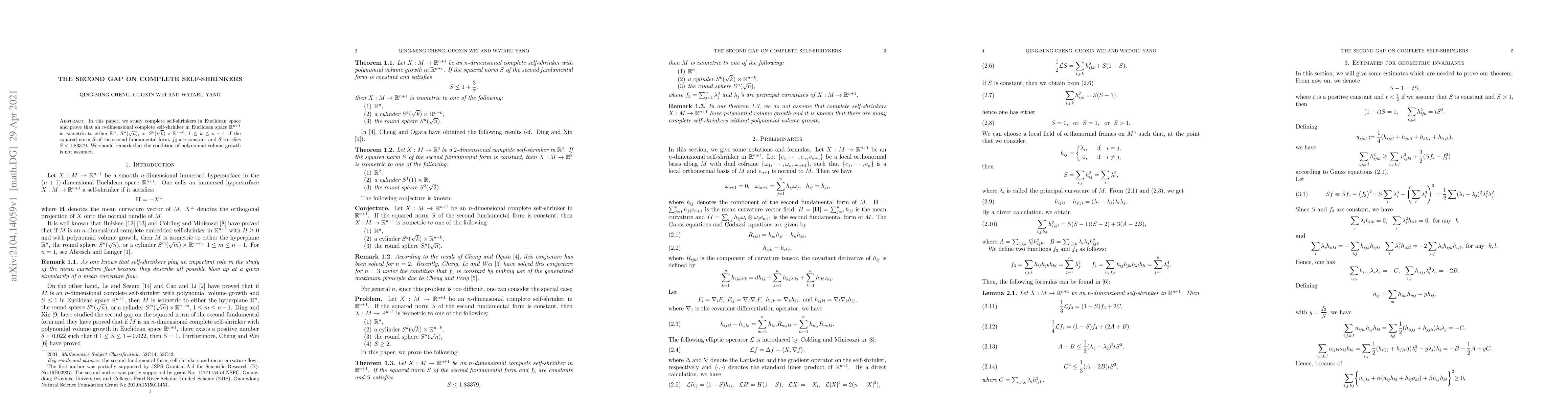 The paper studies complete self-shrinkers in Euclidean space using geometric inequalities and the normalized mean curvature flow. It employs techniques from differential geometry, including Gauss equations and the generalized maximum principle.