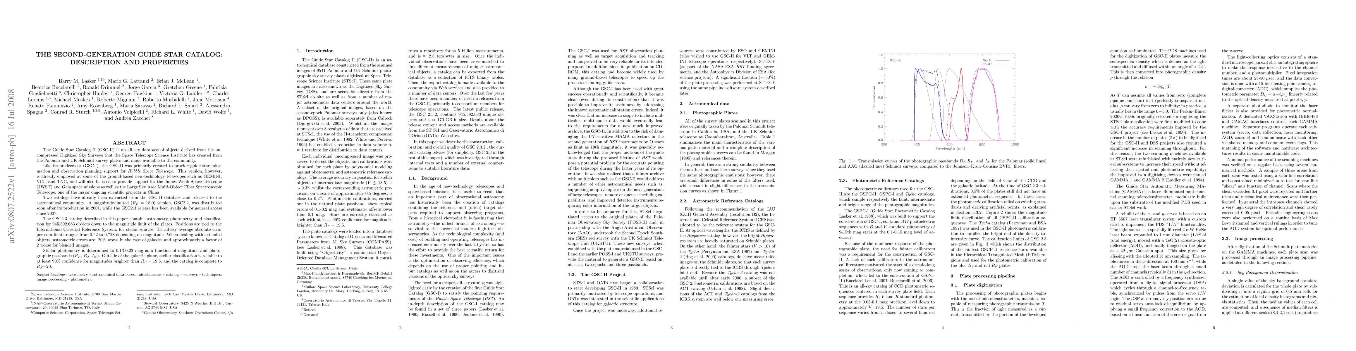 The Second-Generation Guide Star Catalog (GSC-II) contains astrometry, photometry, and classification for 945 million objects, with high accuracy for stellar sources and reliable classification for brighter magnitudes.