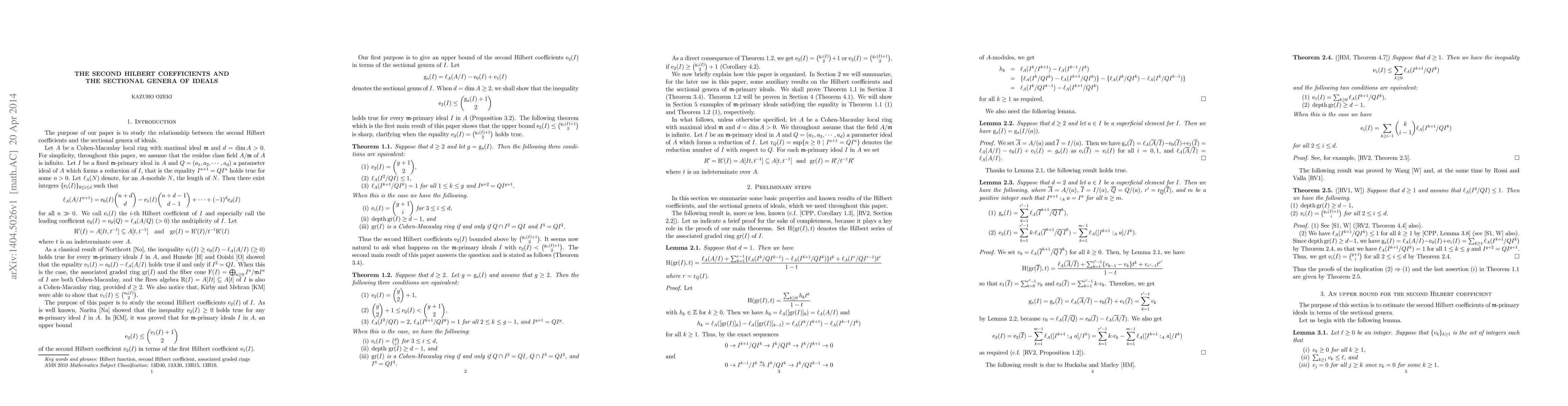 This paper provides an upper bound for the second Hilbert coefficient ${\mathrm{e}}_2(I)$ of $\mathfrak{m}$-primary ideals $I$ in Cohen-Macaulay local rings $(A,{\mathfrak{m}})$, expressed in terms of the sectional genera of $I$. The results offer insight into the interplay between algebraic geometry and commutative algebra.