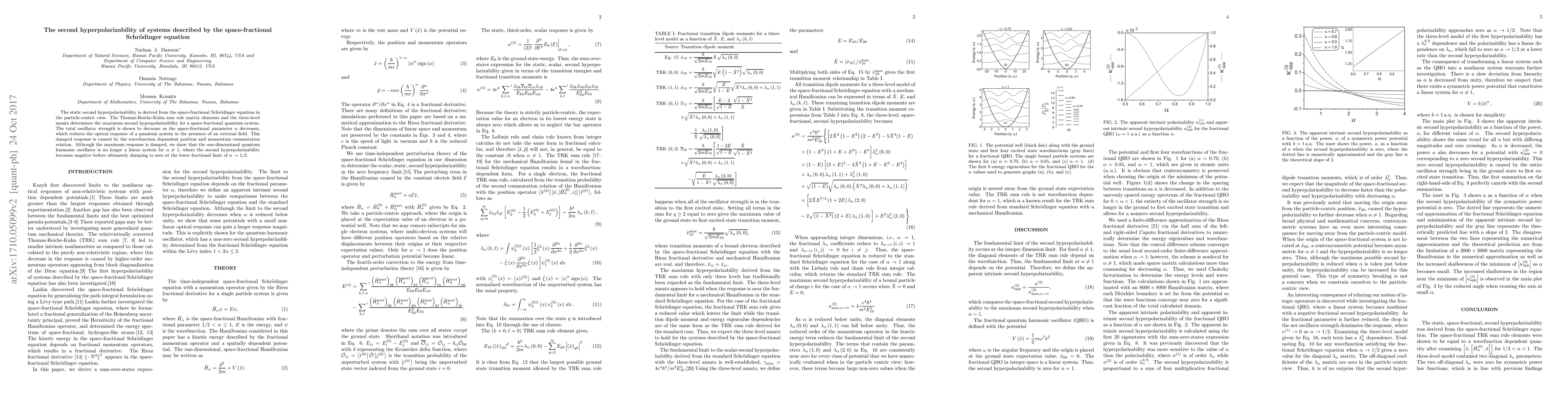 The space-fractional Schrodinger equation predicts a decrease in optical response as its parameter α decreases, leading to a damping of the system's hyperpolarizability. The one-dimensional quantum harmonic oscillator becomes non-linear for α ≠ 1.