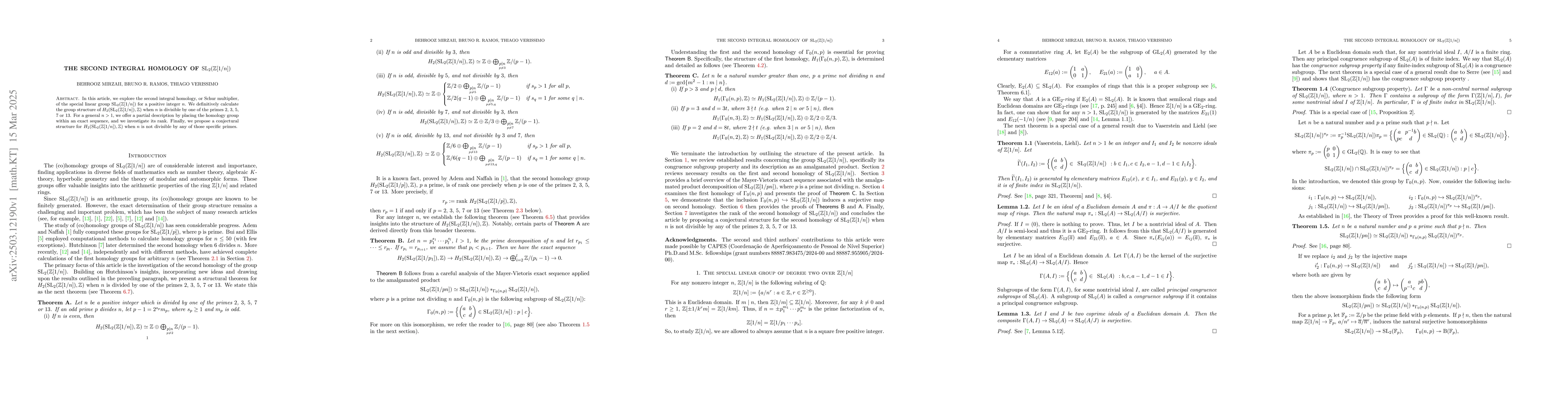The paper employs algebraic and group-theoretic techniques to analyze the second integral homology of ${\rm SL}_2(\mathbb{Z}[1/n])$, focusing on specific primes dividing $n$ and providing a partial description for general $n > 1$.