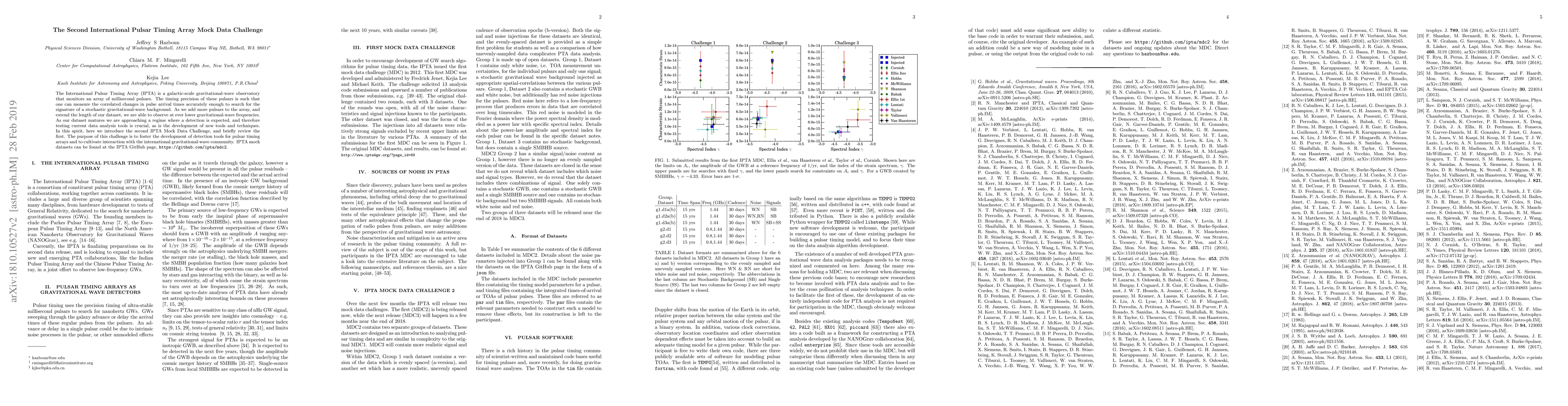 The Second International Pulsar Timing Array Mock Data Challenge aims to develop and test data analysis tools for detecting gravitational waves by simulating pulsar timing datasets. The challenge encourages collaboration within the international gravitational-wave research community to refine detection techniques as the IPTA expands its array of millisecond pulsars.