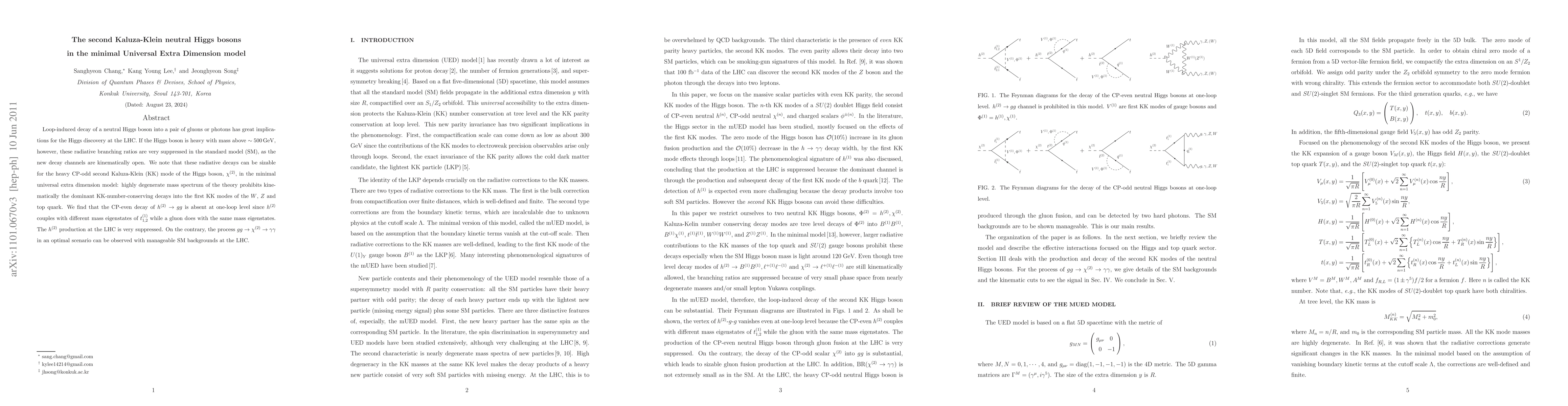 Loop-induced decay of a neutral Higgs boson into a pair of gluons or photons has great implications for the Higgs discovery at the LHC. If the Higgs boson is heavy with mass above $\sim 500\gev$, however, these radiative branching ratios are very suppressed in the standard model (SM), as the new decay channels are kinematically open. We note that these radiative decays can be sizable for the heavy CP-odd second Kaluza-Klein (KK) mode of the Higgs boson, $\chi^\tw$, in the minimal universal extra dimension model: highly degenerate mass spectrum of the theory prohibits kinematically the dominant KK-number-conserving decays into the first KK modes of the $W$, $Z$ and top quark. We find that the CP-even decay of $h^{(2)} \to g g$ is absent at one-loop level since $h^{(2)}$ couples with different mass eigenstates of $t_{1,2}^\on$ while a gluon does with the same mass eigenstates. The $h^\tw$ production at the LHC is very suppressed. On the contrary, the process $ gg \to \chi^\tw \to \gamma\gamma$ in an optimal scenario can be observed with manageable SM backgrounds at the LHC.